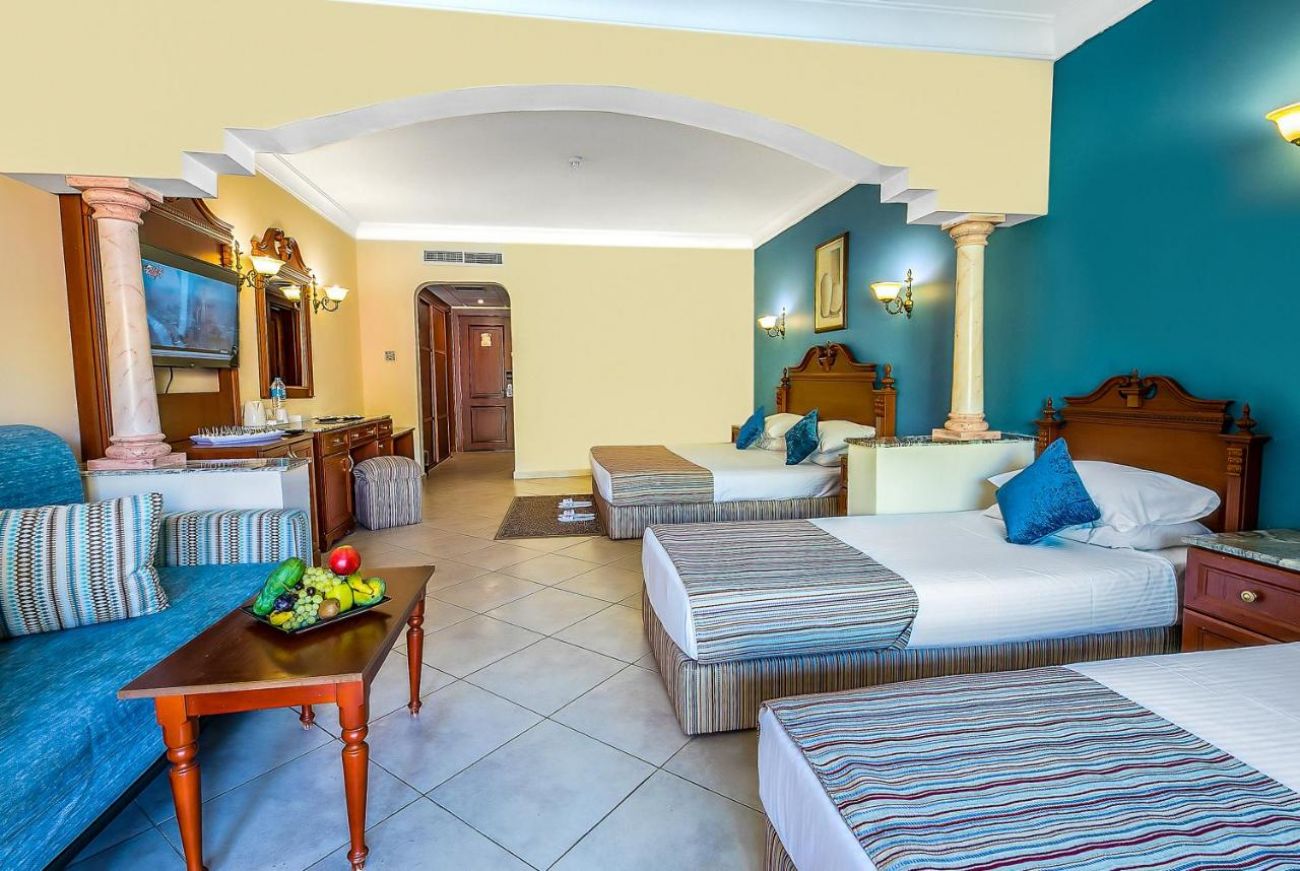 Хотелът разполага с общо 593 стаи, разположени триетажна корпуси, от които пететажни сгради, от които Standard rooms (с изглед градина, басейн, частичен изглед море, 48 m²), Swim up standard rooms – adults only (48 m²), Superior rooms pool view, garden view, (55 m², 1 спалня, баня с джакузи), Family Standard rooms (55 m² 1 спалня с изглед градина, басейн, частичен изглед море), Family rooms (58 m², две спални със свързваща врата, с изглед градина/басейн), Bungalow rooms (48 m² adults only, разположени в средата на басейна, заобиколени от вода). Всички стаи са оборудвани с климатик, телевизор, телефон, баня с душ, сешоар, тоалетни принадлежности, сет за чай/кафе, минибар, сейф, балкон/тераса. Почистване на стаите, смяна на кърпите и спалното бельо - всеки ден.