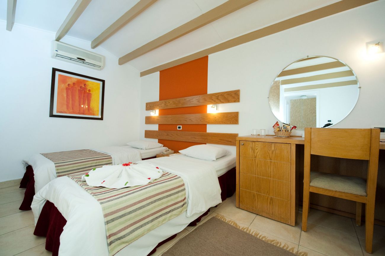 Всички стаи са оборудвани с климатик, телевизор, телефон, баня с душ/вана, сешоар, минибар (платен), сейф, балкон. Почистване на стаите– всеки ден.