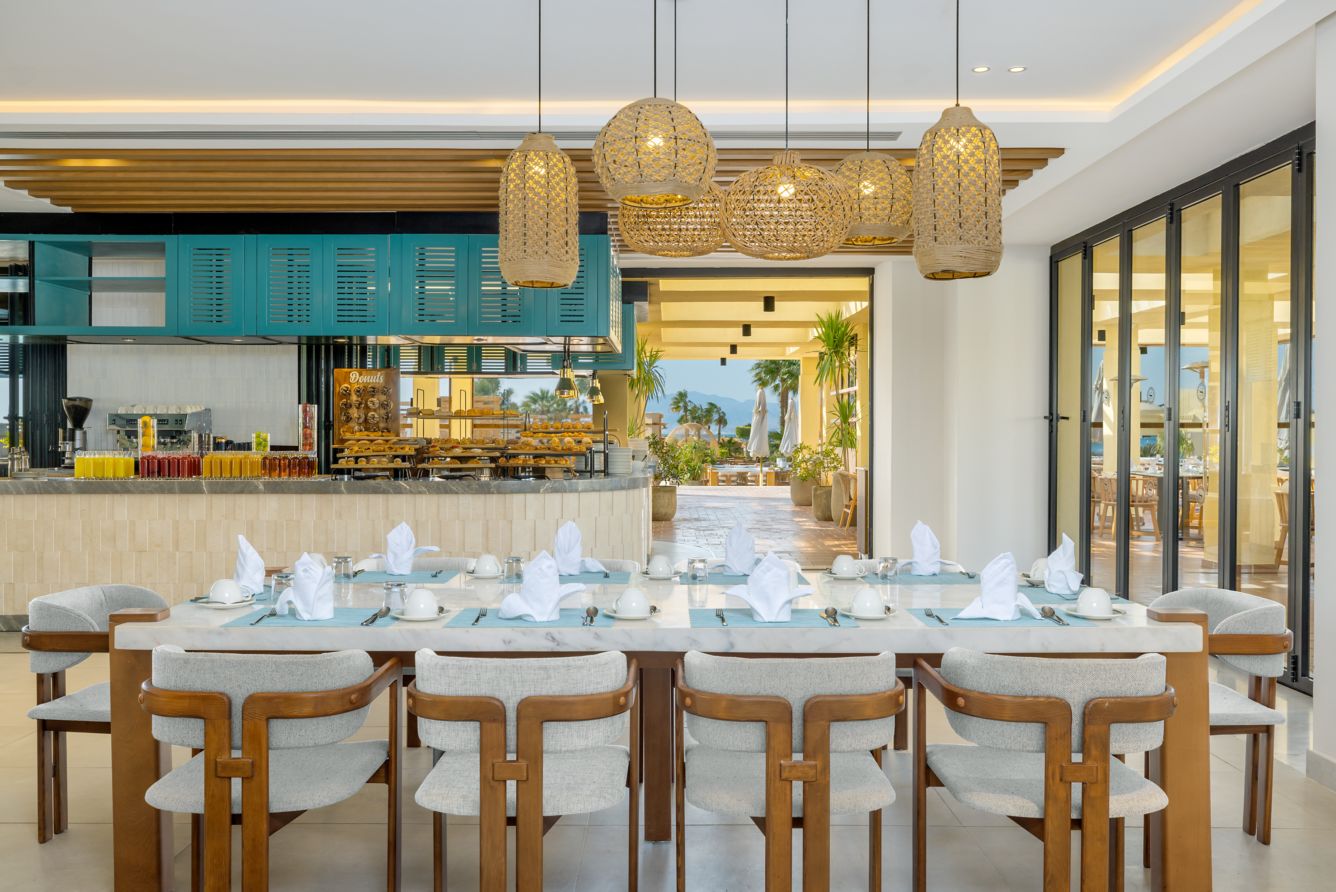 Основен ресторант, 1 а-ла-карт ресторант (рибен – с предварителна резервация, съгласно концепцията на хотела), 2 бара, 2 открити басейна, аквапарк, СПА център, 9 конферентни зали, магазини.