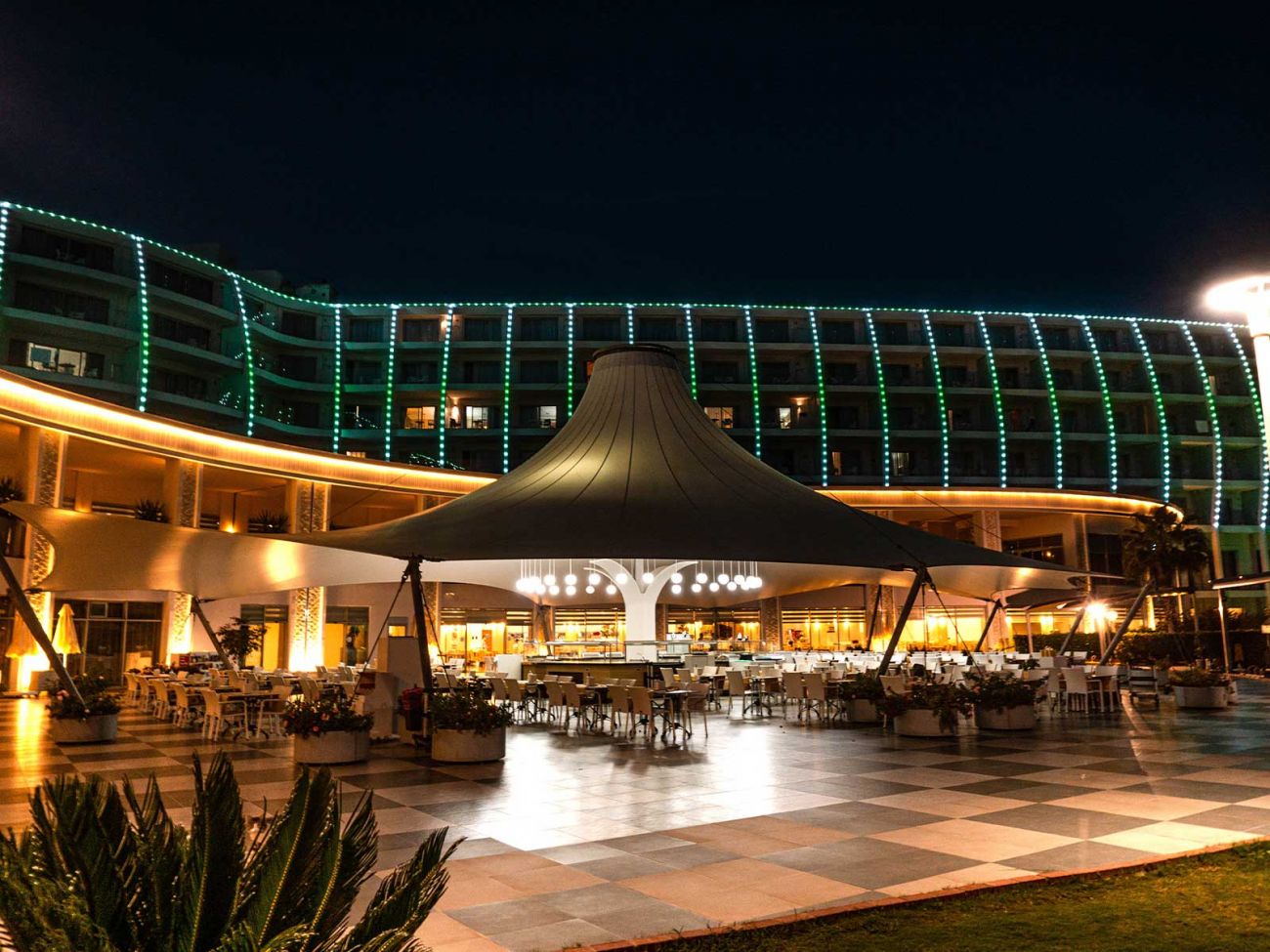 Основен ресторант, 3 а-ла-карт ресторанта (италиански, рибен и туски), детско меню, 4 бара, открит басейн 1200 м2, водна пързалка, релакс басейн, детски басейн, закрит басейн, анимация, вечерни шоу програми, жива музика, детски клуб (4-12г.), СПА център, конферентни зали. Безплатни услуги: турска баня, сауна, парна баня, джакузи, фитнес, аеробика, водна гимнастика, интернет (на лобито). Платени услуги: масажи и пилинги, фризьор, лекар, детегледачка, пералня и химическо чистене, коли под наем, интернет клуб, водни спортове. Плаж: Собствен, пясъчен. Чадъри, шезлонги и матраци на плажа - безплатно. Кърпи за плажа и басейна - безплатно.