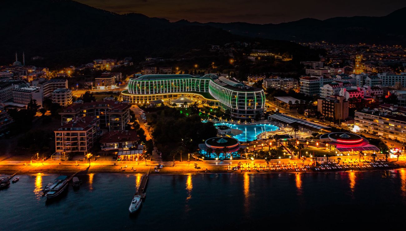 Хотелът се намира на 90км от летище Даламан, на 1км. от центъра на Мармарис, на брега на морето. Построен е през 2014г. с обща площ от 40 000 м2.