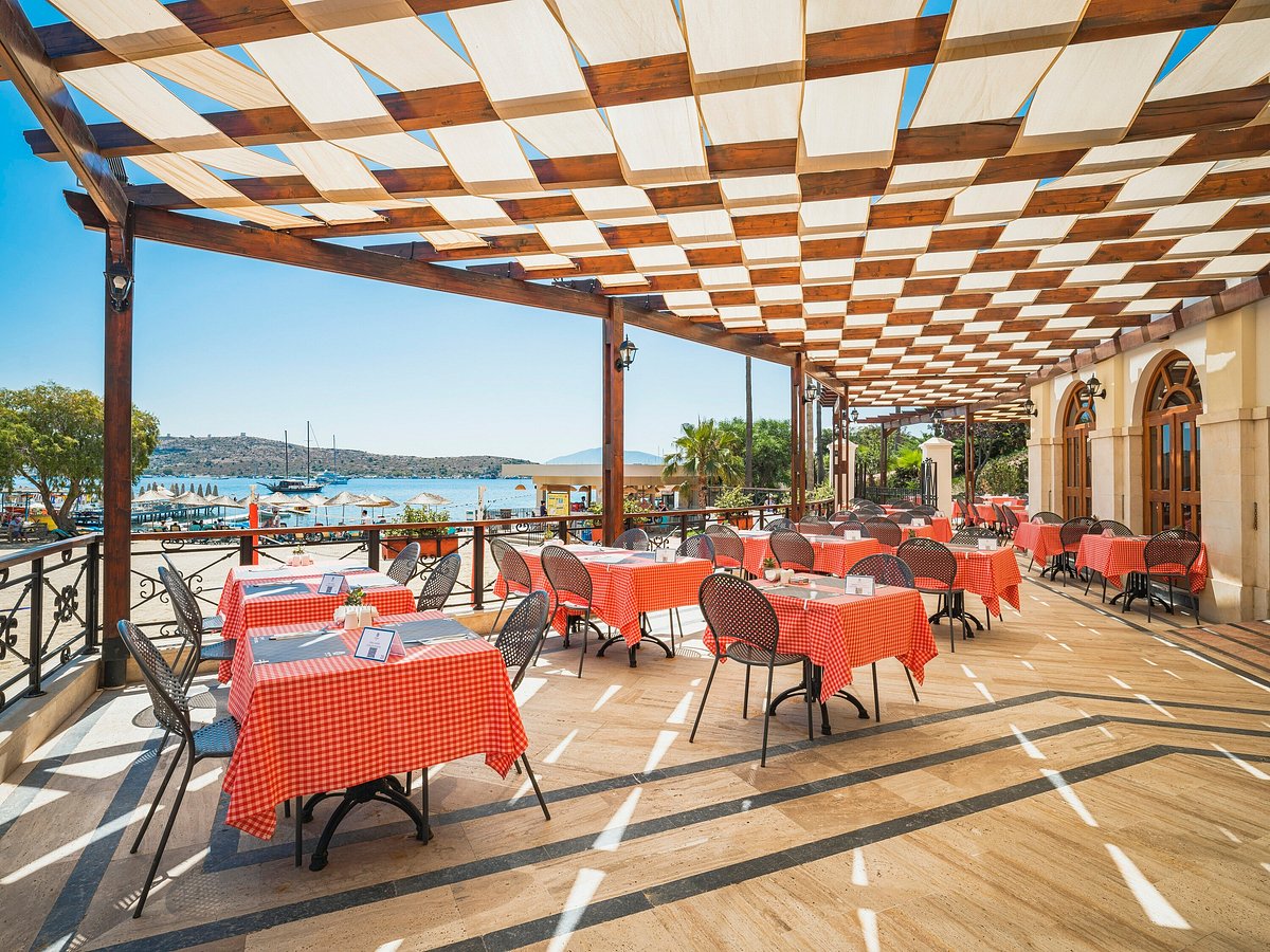 Намира се на 35 км от летище Милас, на 4 км от центъра на Бодрум, в района на Гюмбет, на брега на морето. Построен 1999 г., на обща площ от 38 000 m². Реновиран 2023г.