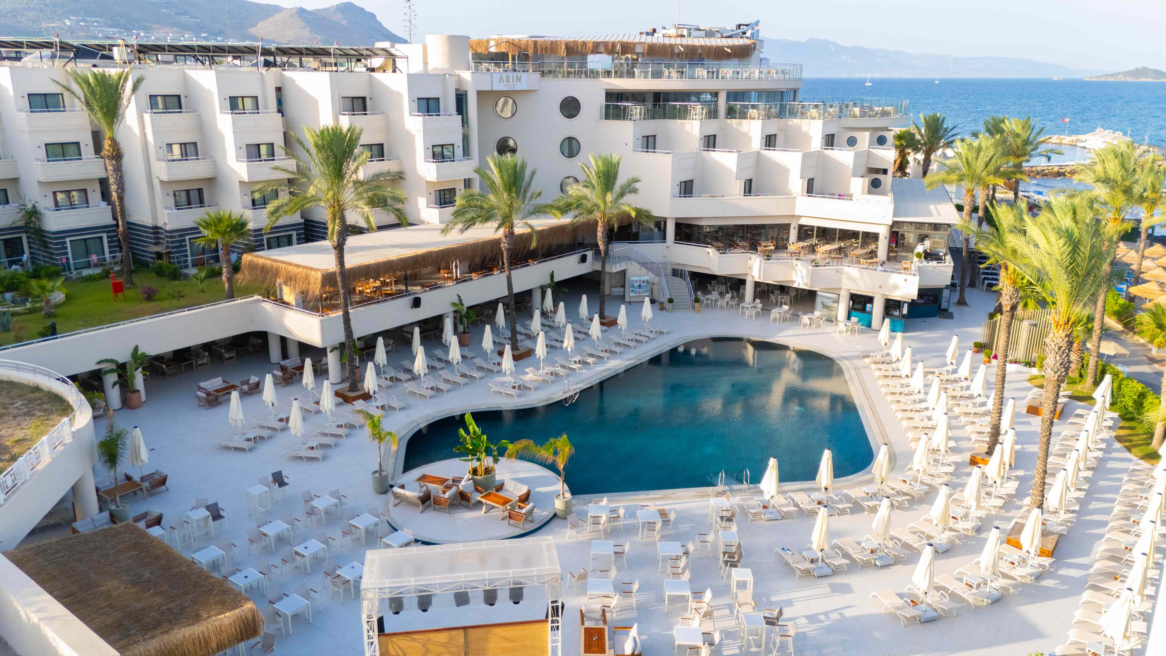 Хотелът е разположен на 50 км от летище Милас, на 20 км от центъра на Бодрум, в района Тургутрейс, на 1 км от центъра на Тургутрейс, на брега на морето. Разполага с площ от 30.000 m², последно реновиран изцяло през 2022/3 година.