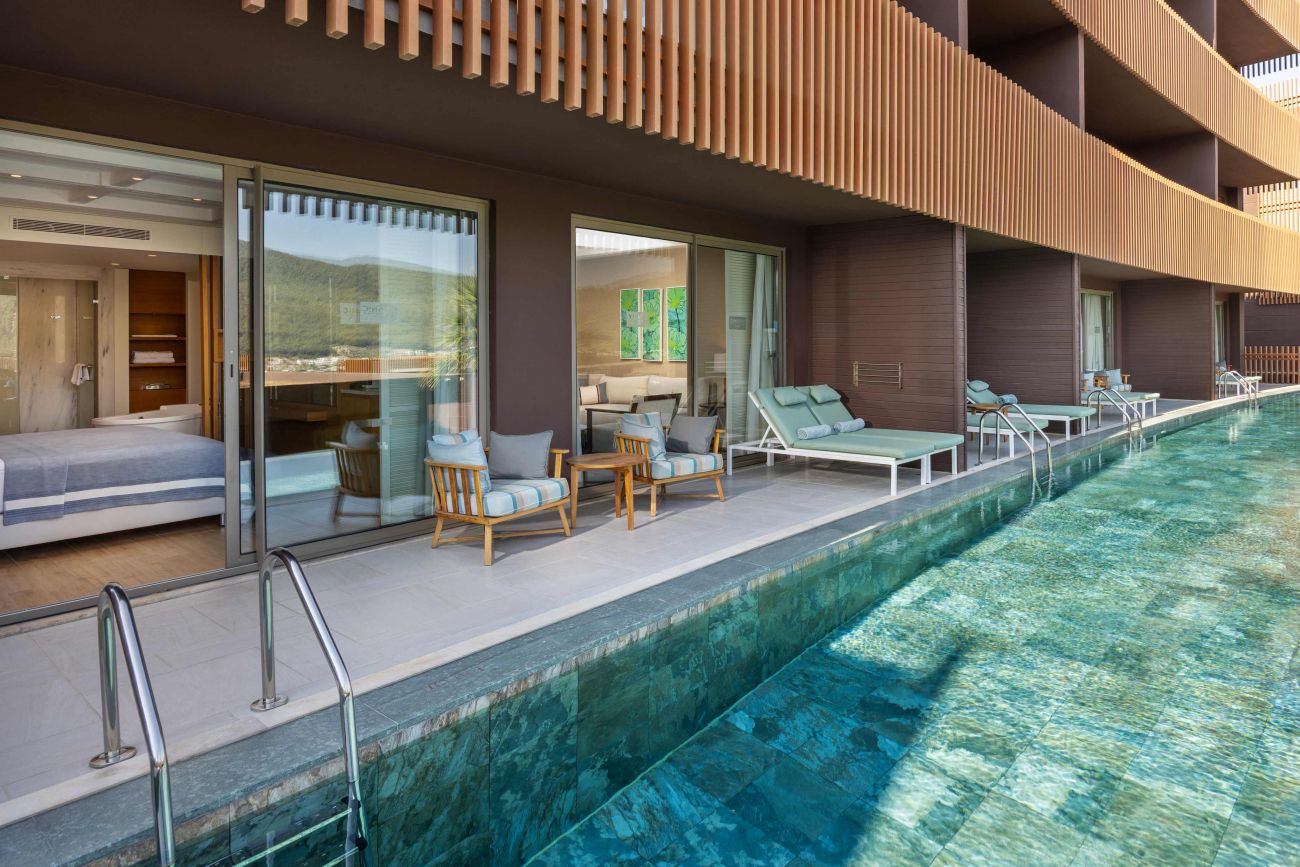 Намира се на 15 км от летище Бодрум, на 25 км от центъра на Бодрум, в района на Гюверджинлик, на брега на морето. Построен 2016 г., на обща площ от 80 000 м². Реновиран 2023 г.
