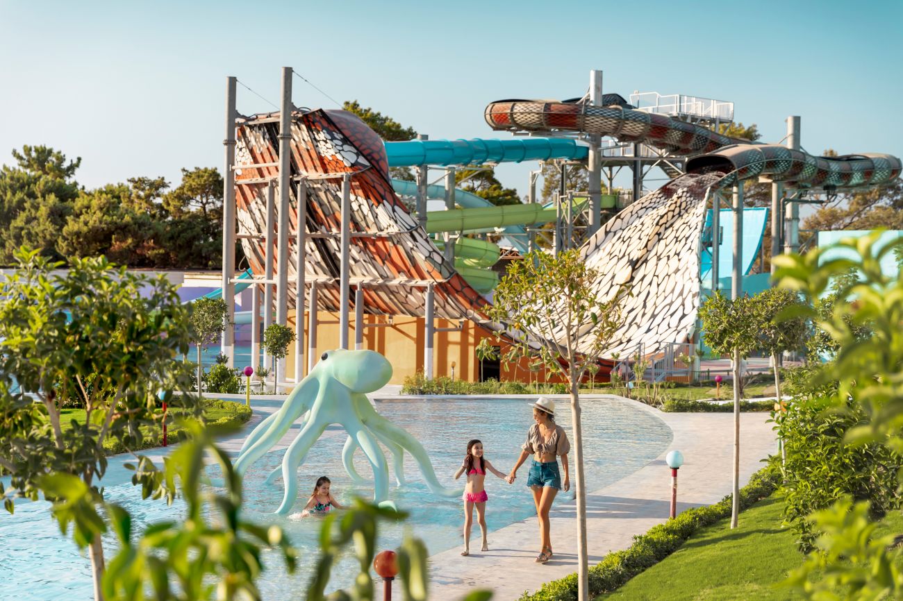 Основен ресторант, 7 а-ла-карт ресторанта (рибен, турски, италиански - 1 безплатно посещение на 1 от ресторантите при минимум 7 нощувки, световна кухня 7/24, азиатски, гръцки - срещу заплащане, VIP ресторант на вилите, сладкарница, 4 бара, 7 открити басейна,голям аквапарк, приключенски парк, кино, амфитеатър, СПА център, дискотека, магазини, 3 конферентни зали, паркинг.