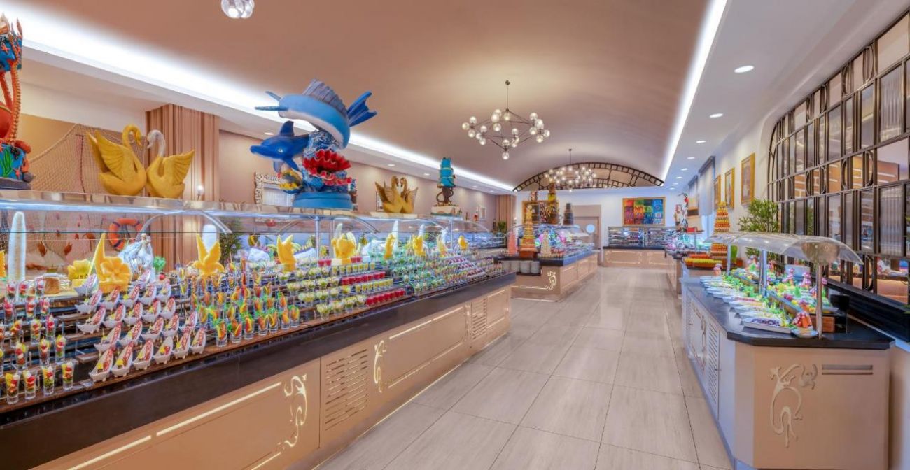 Основен ресторант, 6 а-ла-карт ресторанта (японски, стек ресторант – платени; рибен, турски, италиански, суши, мексикански – 1 безплатно посещение на 1 от ресторантите при минимум 7 нощувки), сладкарница, 7 бара, 4 открити и 1 закрит басейн, аквапарк, кино, амфитеатър, СПА център, дискотека, магазини, 3 конферентни зали, паркинг.