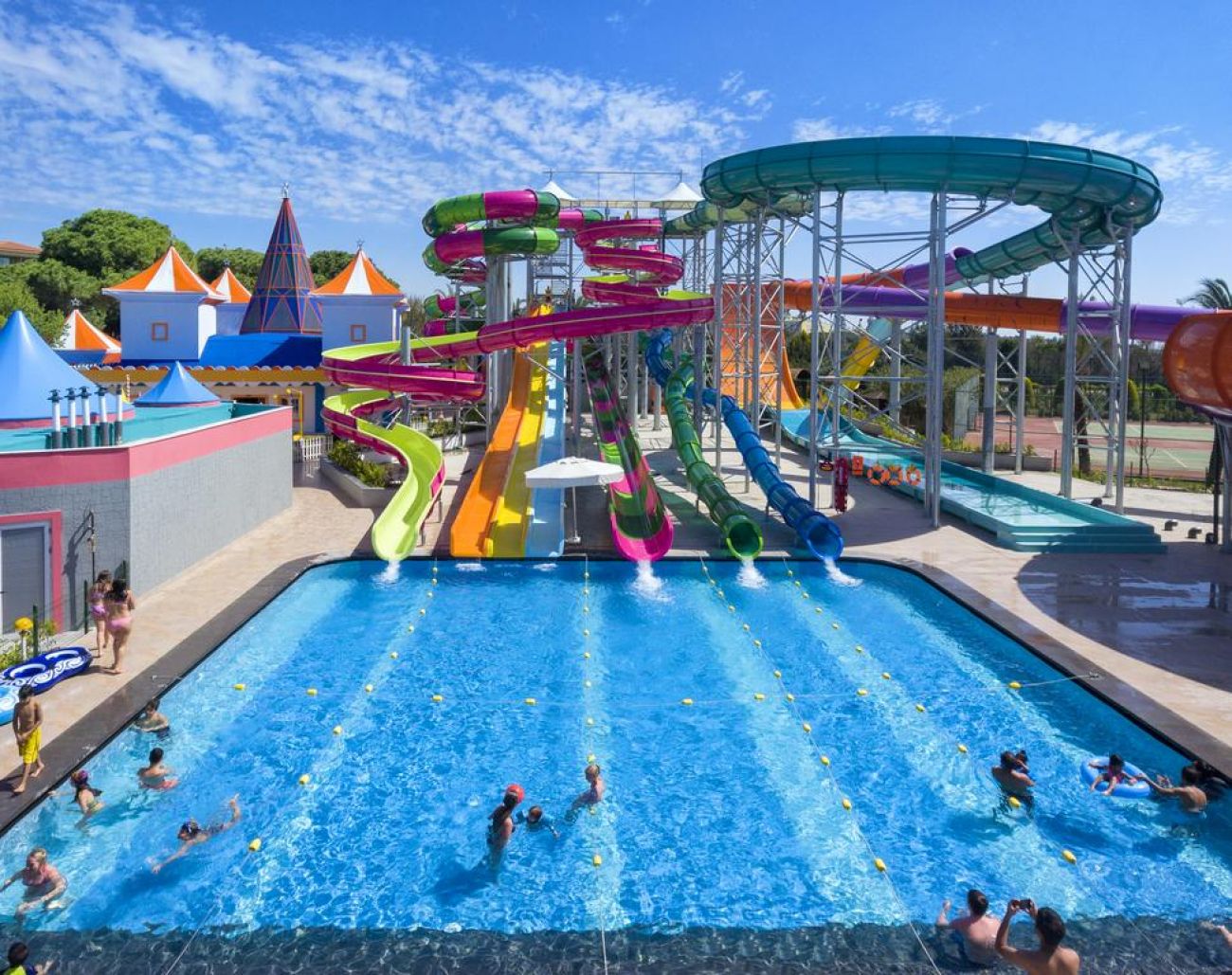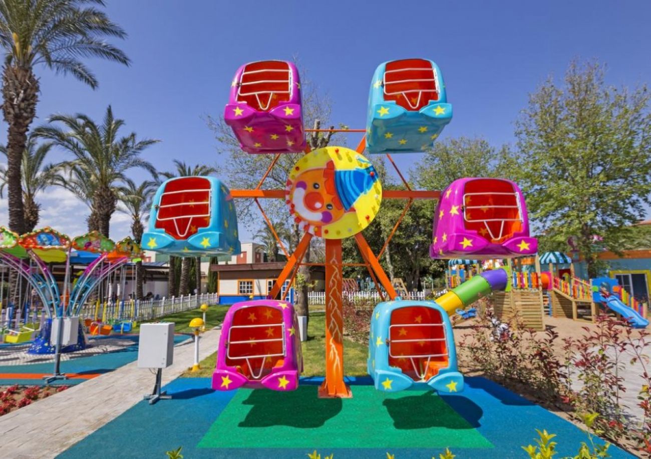 За децата: 3 детски басейна, детска площадка, увеселителен парк, бeйби клуб (0-4г.) мини клуб (5-12г), тийн клуб (12-16г), мини диско, детска анимация, детска количка (под наем), детски бюфет.