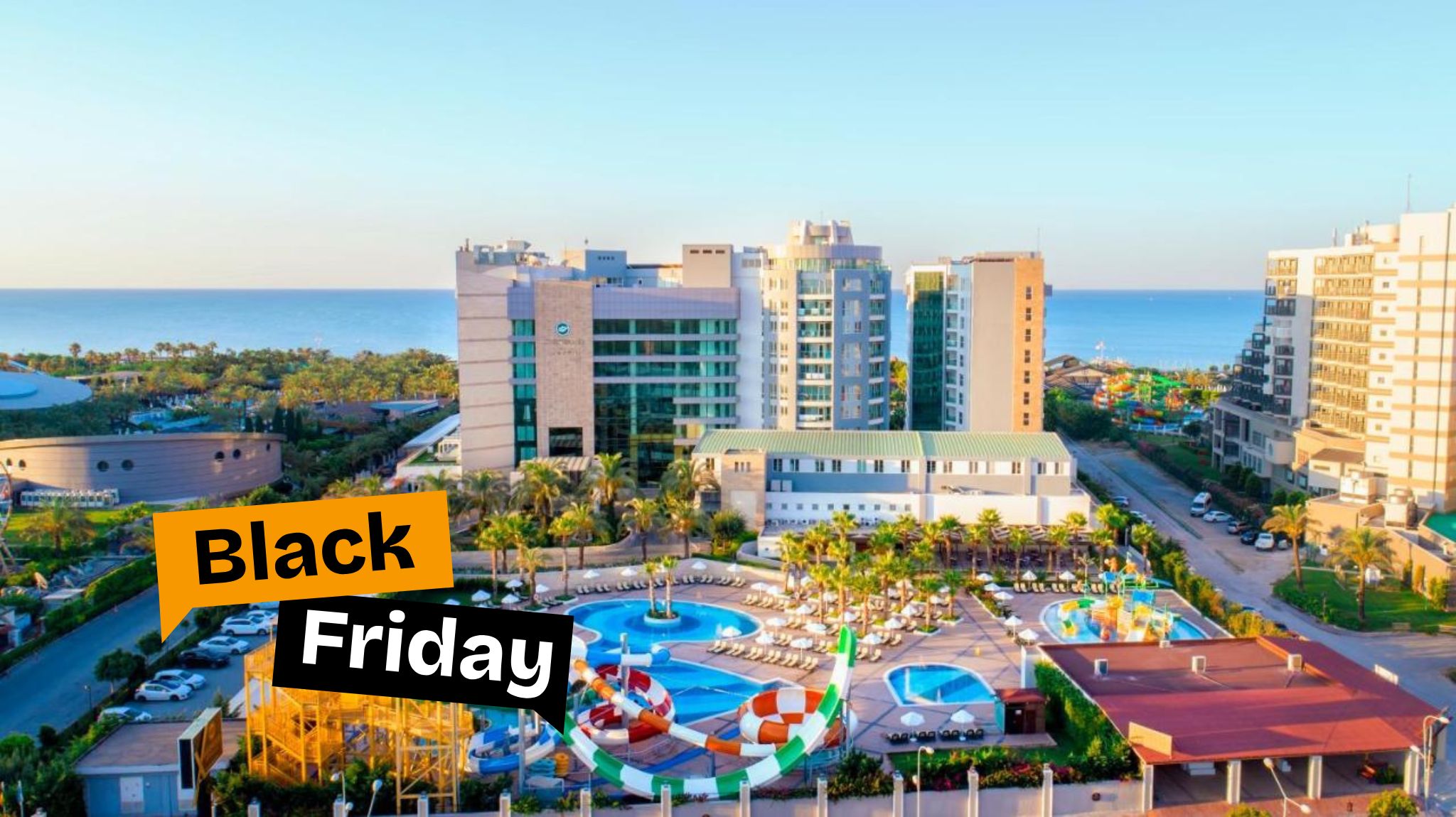 Хотелът се намира на брега на морето, в района на Лара, на 12 км. от центъра и 10 км. от летището на Анталия. Построен е през 2005г. и е последно реновиран 2019-2020г. с обща площ от 33 000 кв.м.