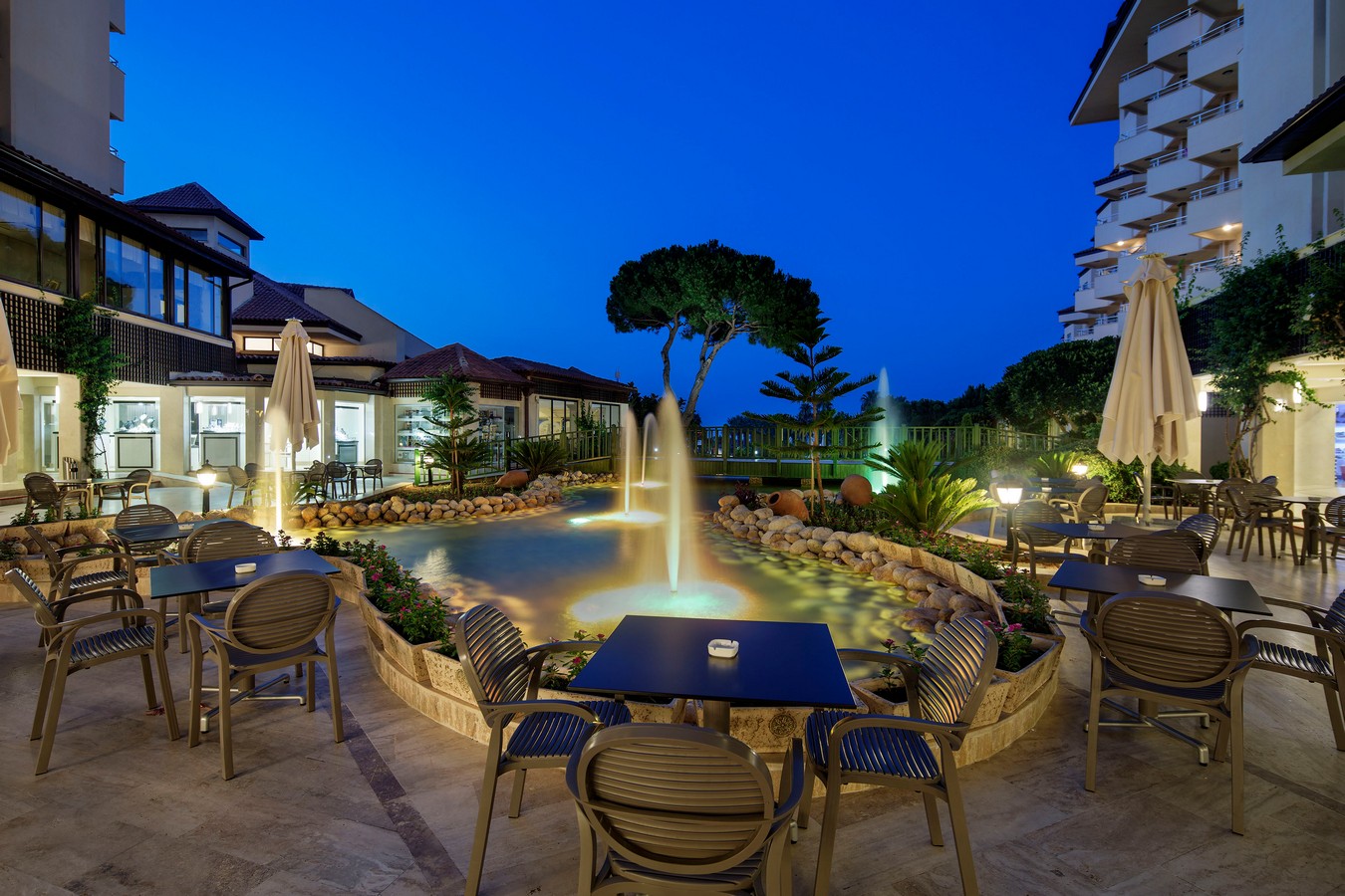 Основен ресторант, 5 а-ла-карт ресторанта (турски, средиземноморски, италиански, интернационален, азиатски, световен – срещу заплащане), 6 бара, 5 открити и 1 закрит басейн, дискотека, сладкарница, СПА център, аквапарк, 8 конферентни зали, Wi–Fi (в лоби).