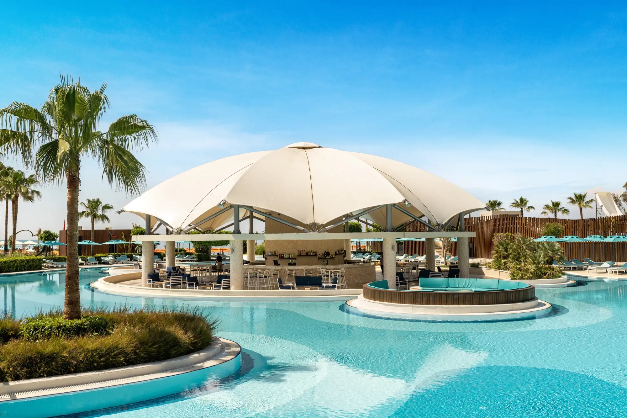 Основен ресторант, 5 а-ла-карт ресторанта ( Ливански, Италиански, Азиатски, Интернационален, Средиземноморски), 9 бара, 2 закрити басейна, 2 открити басейна, 2 детски басейна. Безплатни услуги: турска баня, сауна, парна баня, фитнес център, аквапарк, дартс, водно колело, тенис на маса, йога, аеробика, плажен волейбол, баскетбол, стрелба с лък, анимационни програми, уроци по танци, уроци по готварство, интернет кафе, кино, жива музика, амфитеатър. Платени услуги: масаж, СПА, тенис кортове, голф, водни спортове, планинско колоездене, уроци по тенис, билярд, магазини, коли под наем, лекар, бизнес център, пералня, химическо чистене, фотограф, фризьор. ПЛАЖ: Собствен, пясъчен. Чадъри и шезлонги на плажа и при басейна – безплатно.