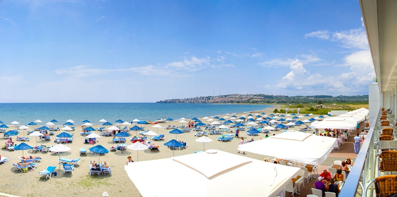Плаж: собствен, пясъчно-чакълест със сертификат „Син флаг“. Чадъри и шезлонги при басейна и на плажа - безплатно.