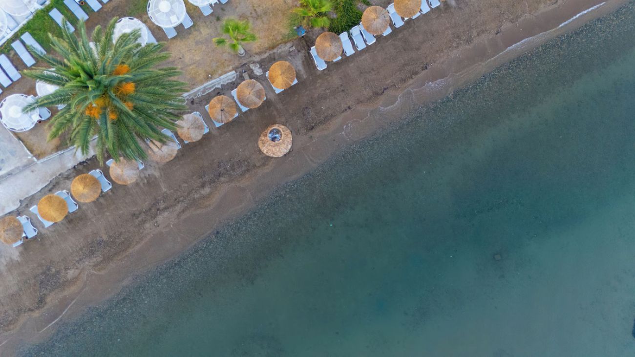 Собствен плаж: пясъчно-чакълест. Чадъри, шезлонги, кърпи на плажа и при басейна-безплатно.