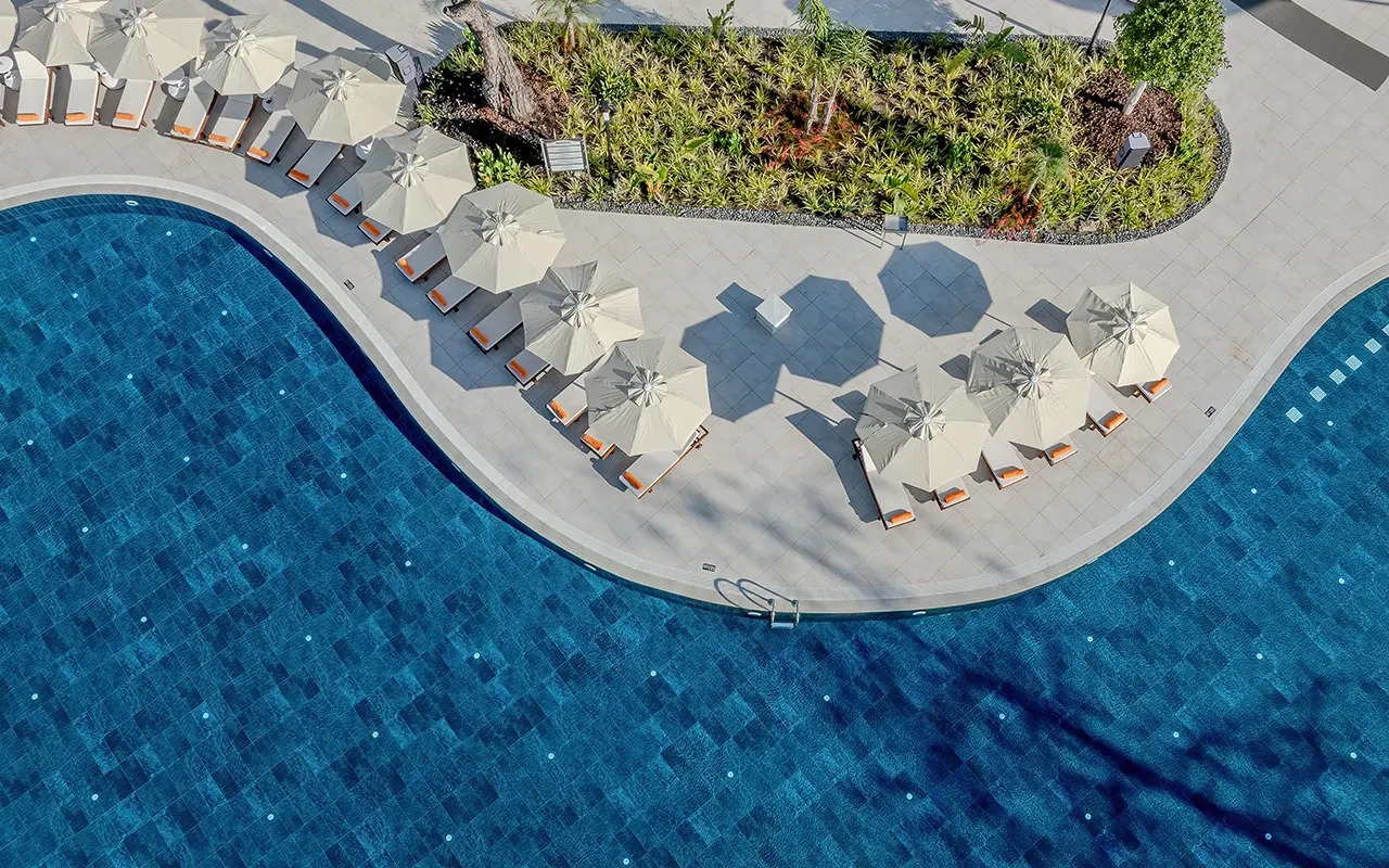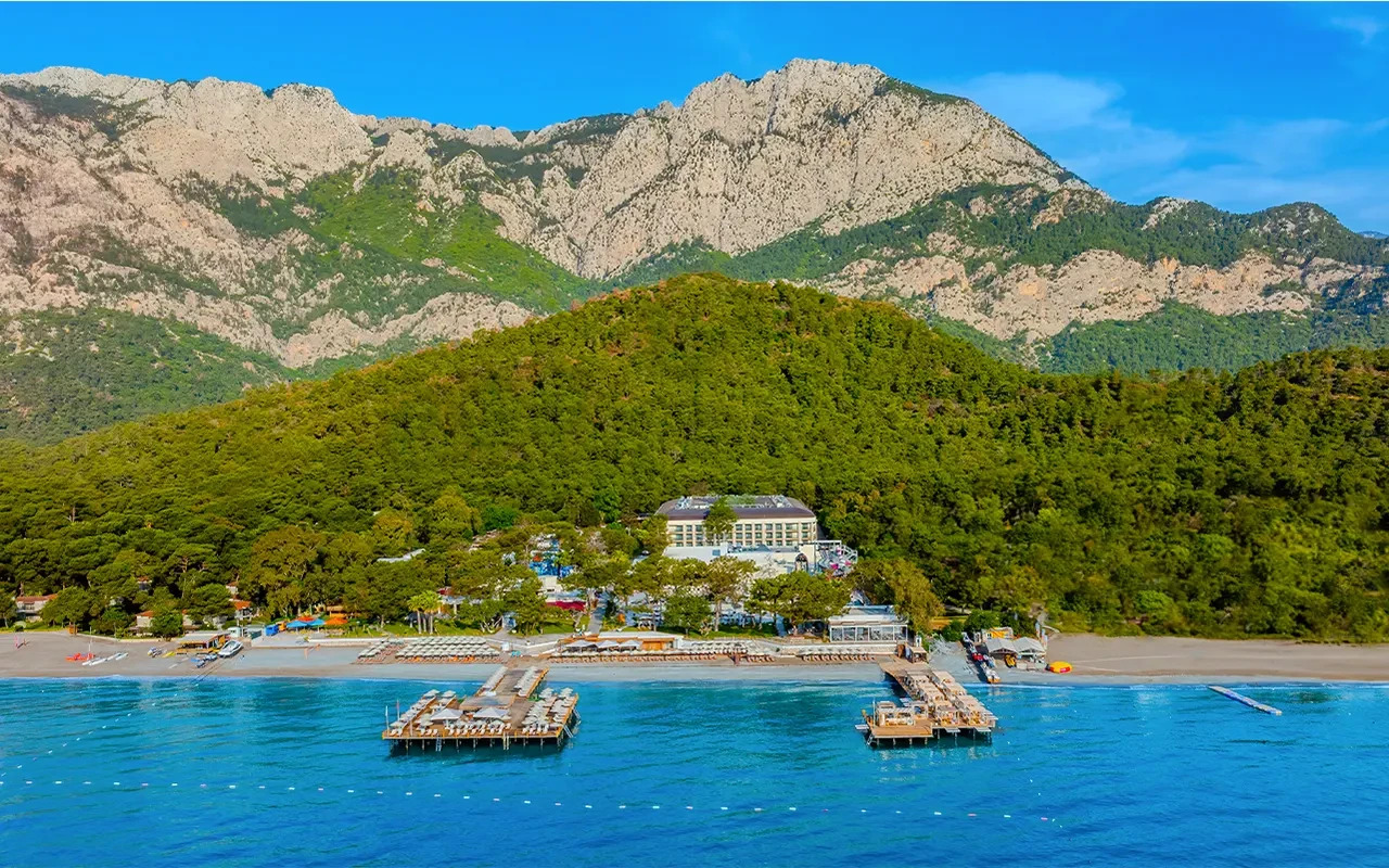 Намира се на 52 км от летище Анталия, на 45 км от центъра на Анталия, на 5 км от центъра на Кемер, на брега на морето. Изцяло реновиран през 2024 г., на обща площ от 60 000 м2.