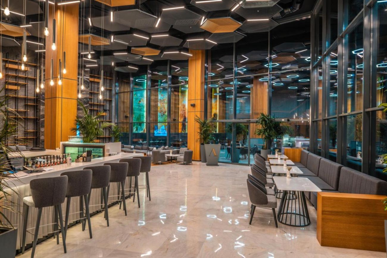 Основен ресторант, 4 а-ла-карт ресторанта (Vetusto - италиански, Koz - турски, Pul - рибен и Gusto 24 - отворен 24/7), 5 бара - Lobby Bar 24/7, Pool Bar 10:00-00:00, Beach Bar 10:00-23:00, Beach Club 10:00-01:00, Relax Bar 10:00-18:00, Snack ресторант, сладкарница, 3 открити и 1 закрит басейн, СПА център.