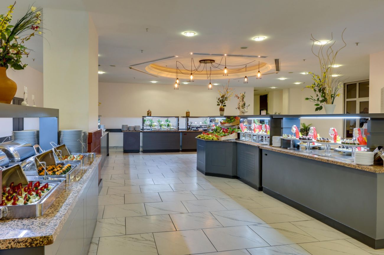 Основен ресторант, 1 а-ла-карт ресторант (рибен, с предварителна резервация; 01.06 - 30.09, едно безплатно ползване за престой от минимум 5 нощувки), 4 бара - Lobby Bar - 24/7, Roof Bar 18:00-24:00, Beach Bar 10:00-18:00, Pool Bar 10:00-24:00, открит и закрит басейн, детски басейн, СПА център, лека анимация, магазин, фризьорски салон, 4 конферентни зали, паркинг.
