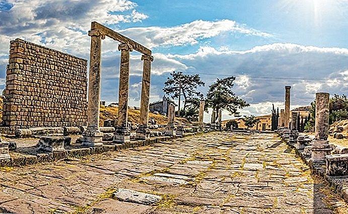 Древният храм на Пергам трябва да спечели награда за неговото зашеметяващо местоположение сам. Преминавайки през хълма, на пет километра от съвременния град Бергама, районът на Акропола някога е биещото сърце на един мощен елинистически град. Най-забележителната характеристика е 15 000 места театър, построен в стръмния югозападен склон на хълма и достиган от тесен стълб от стъпалата Храмът на Атина, Към храма се намират руините на известната Пергам библиотека, построена около 170 г. пр. Хр. И веднъж дом на една от най-големите библиотеки в древния свят, с 200 000 тома (по-късно пренесен в Александрия от Марк Антоний като подарък за Клеопатра). На запад от библиотеката е Храмът на Траян, построена през римската епоха, с мраморна колонадова тераса. Под театъра Олтар на Зевс някога е бил украсен със сложни фризове.