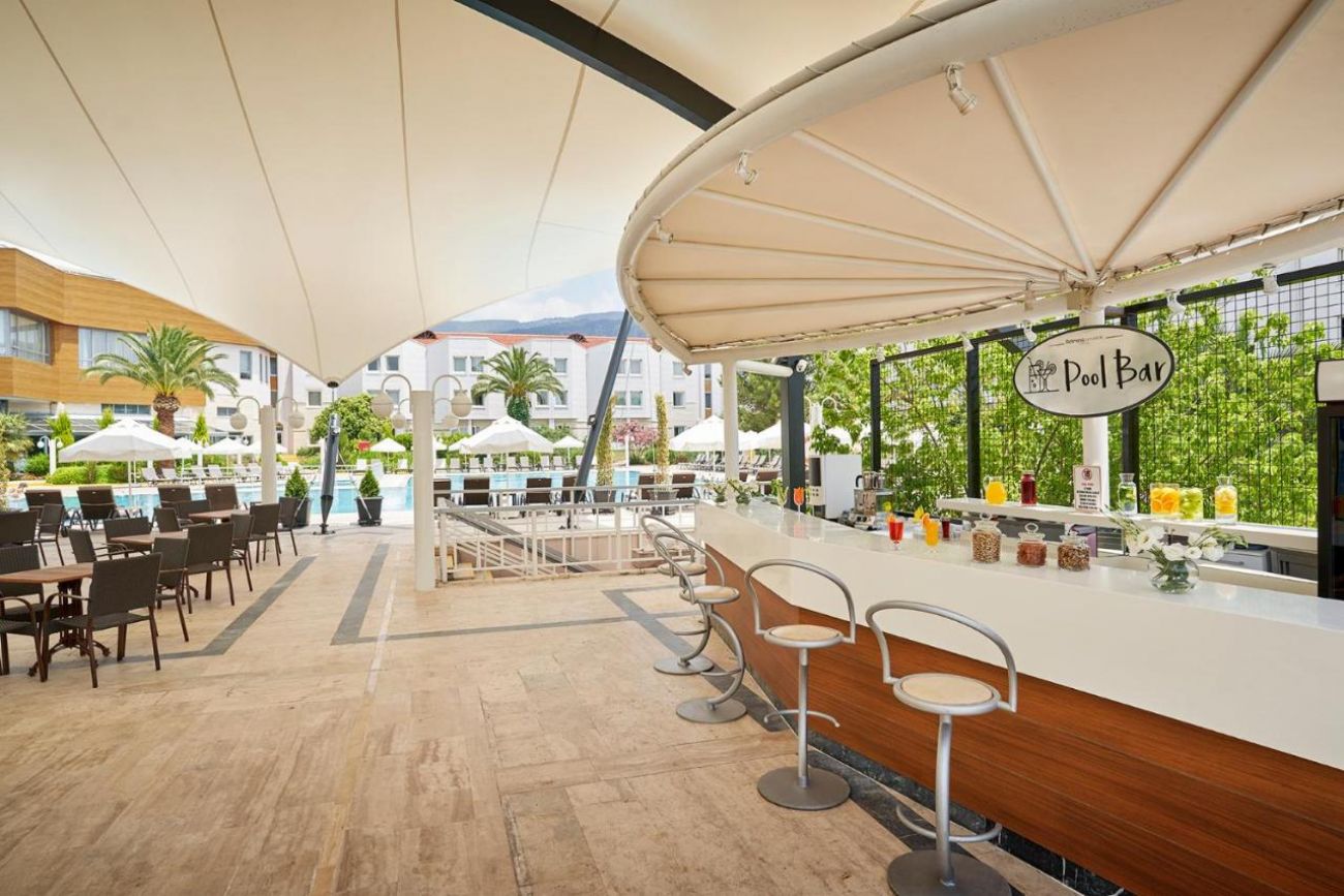 Основен ресторант с изглед към градината (предлага изискани турски и международни ястия), бар Rich, бар Fireplace, бар край басейна, кафене . В СПА центъра Vital Bar се предлагат билкови чайове и органични напитки.модерна фитнес зала, оборудвана с кардио оборудване и тежести, зала СПА центърът на място разполага с турска баня, сауна, приключенска пещера и фитнес зала.