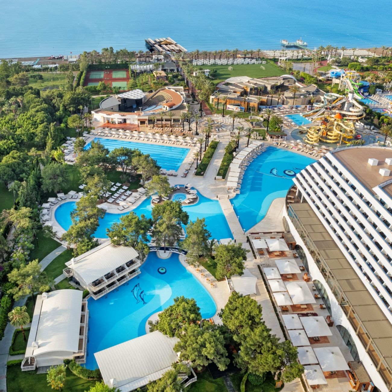 Основен ресторант, 3 а - ла - карт ресторанти (италиански, турски и рибен), 3 открити басейна, закрит басейн, закрит детски басейн, водни пързалки, барбекю, сладкарница, лоби бар , диско бар, витамин бар, боулинг бар, амфитеатър, кино, музика на живо, дискотека (безплатно).