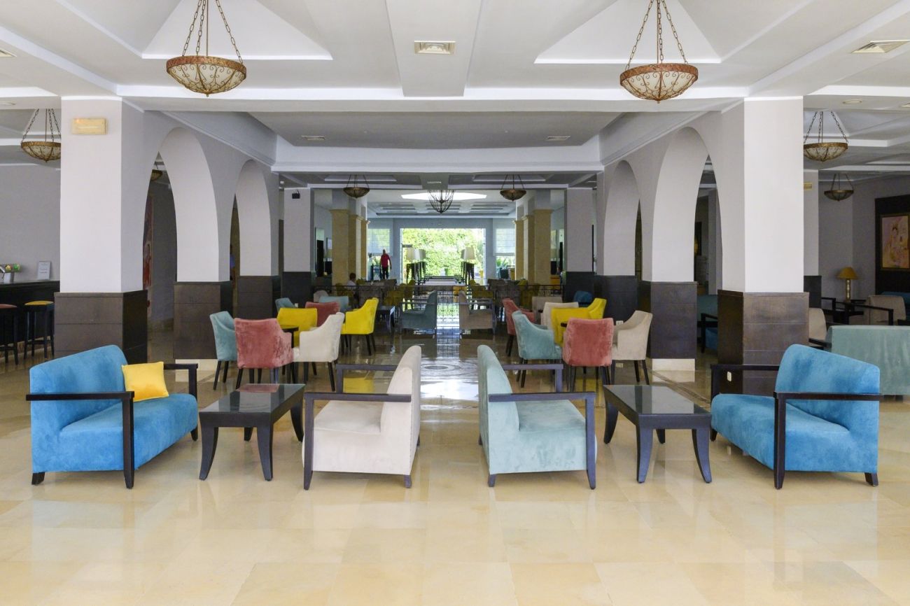 Основен ресторант Thusdrus, 2 а ла карт ресторанта - един с интернационална кухня и втори на плажа, барбекю ресторант (едно безплатно посещение на престой, след предварителна резервация), лоби бар, бар басейн, мавританско кафене, 2 открити басейна, закрит басейн, вътрешен басейн с морска вода в таласо центъра, 5 водни пързалки за възрастни и 1 за деца, анимация, Wi-Fi в лобито, общи части и стаите, сувенирен магазин, обмяна на валута, паркинг.
