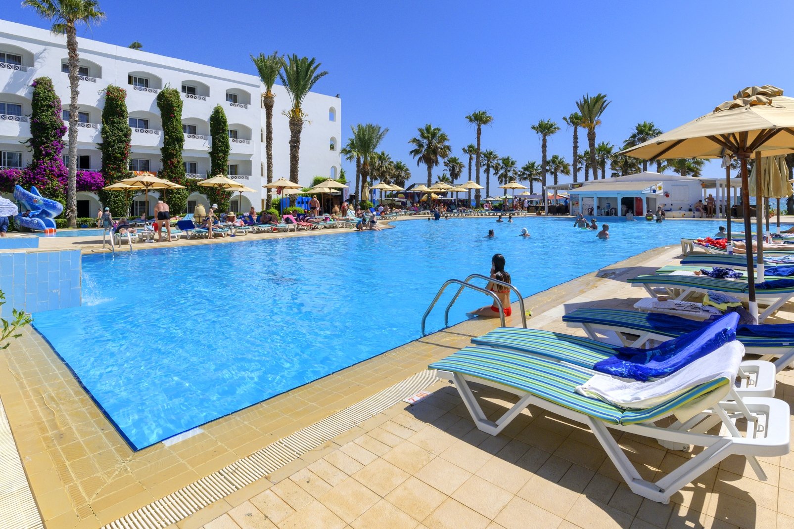 Собствен, пясъчен плаж. Чадъри и шезлонги и матраци на плажа и при басейна - безплатно. Плажни кърпи - безплатно, срещу депозит.
