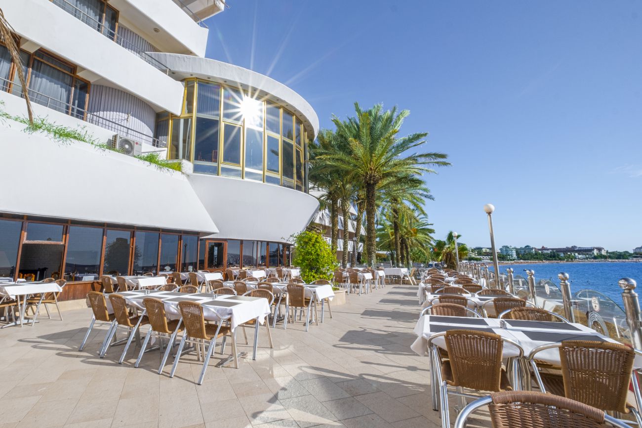 Основен ресторант, 2 а-ла-карт ресторанта (рибен, турски – 1 безплатно посещение на 1 от ресторантите при минимум 7 нощувки, с предварителна резервация), снек ресторант, 2 бара, 1 открит и 1 закрит басейн, СПА център.
