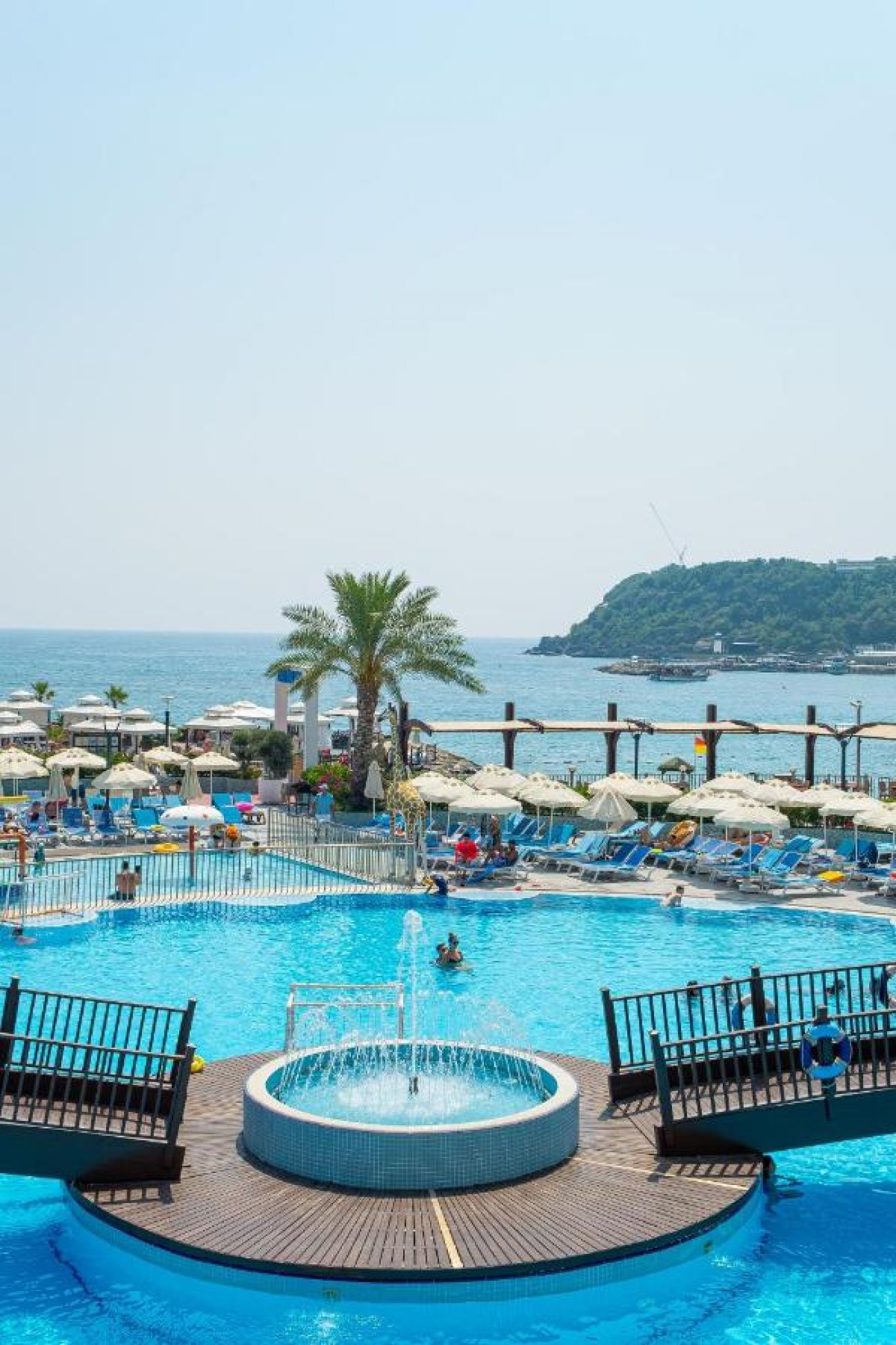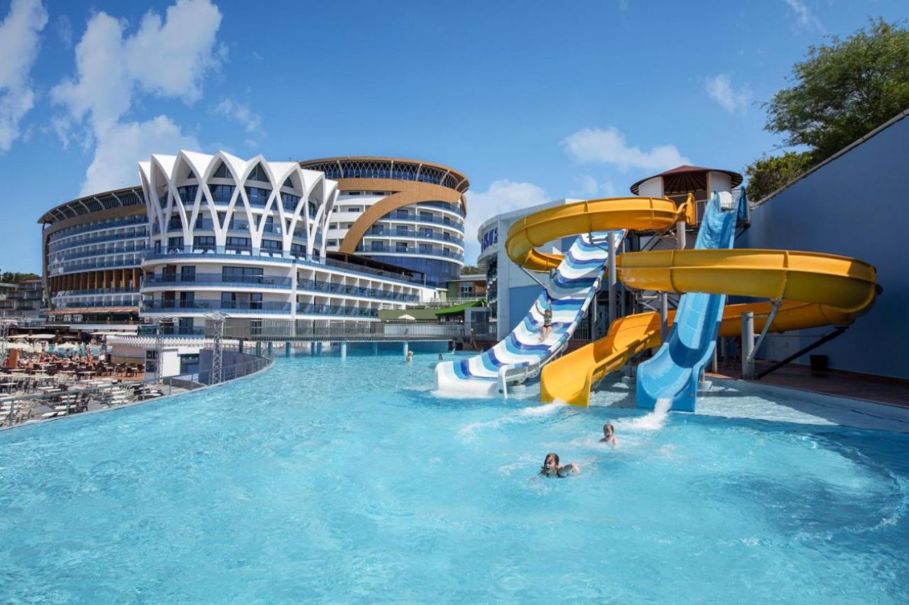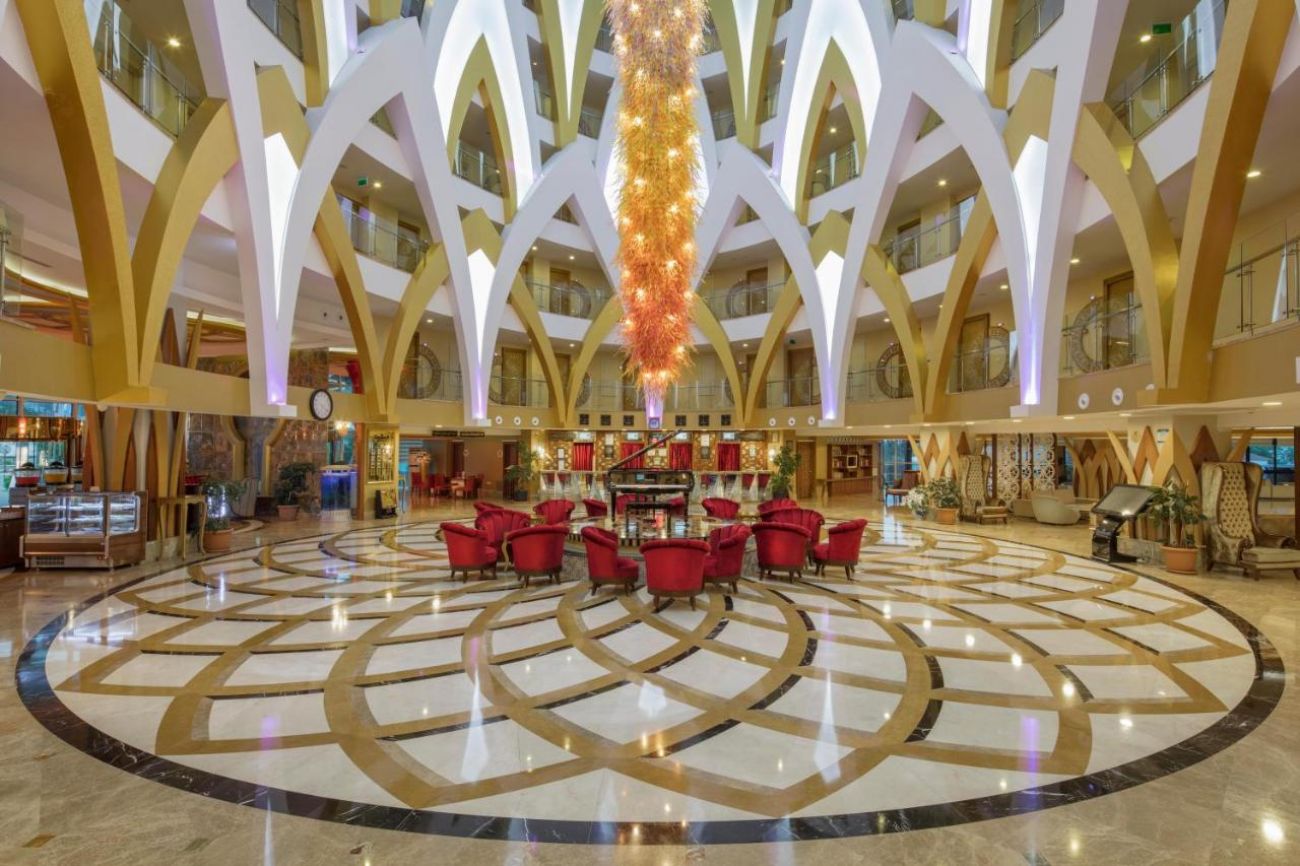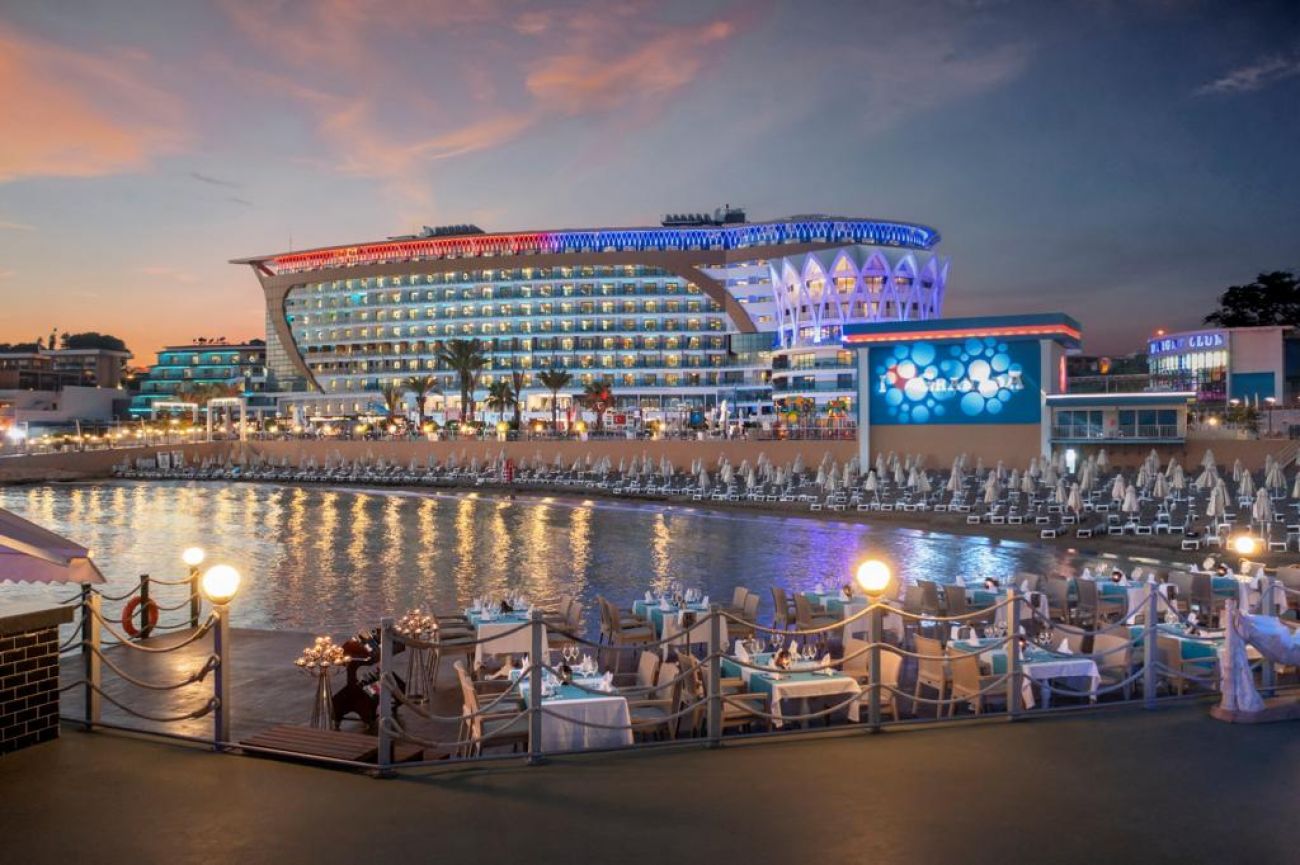 Основен ресторант, 6 а-ла-карт ресторанта (срещу заплащане), сладкарница, 7 бара, дискотека, 3 открити и 1 закрит басейн, 3 водни пързалки, СПА център, магазини, 2 конферентни зали. ЗА ДЕЦАТА: Открит и закрит детски басейн, мини клуб (4-12г.), детска анимация, мини кино, мини диско. БЕЗПЛАТНИ УСЛУГИ: Сауна, турска баня, парна баня, фитнес, аеробика, тенис на маса, 2 тенис корта, дартс, боча, анимация, жива музика, тематични партита, Wi-Fi (в Лоби). ПЛАТЕНИ УСЛУГИ: Масаж, пилинг, фризьор, химическо чистене, лекар, детегледачка, осветление за тенис корт, билярд, боулинг, наем на велосипеди, водни спортове, интернет кафе, рент - а кар. ПЛАЖ: Собствен, платформа (4500 m2). Чадъри, шезлонги и матраци на плажа и при басейна - безплатно. Плажни кърпи – срещу депозит.