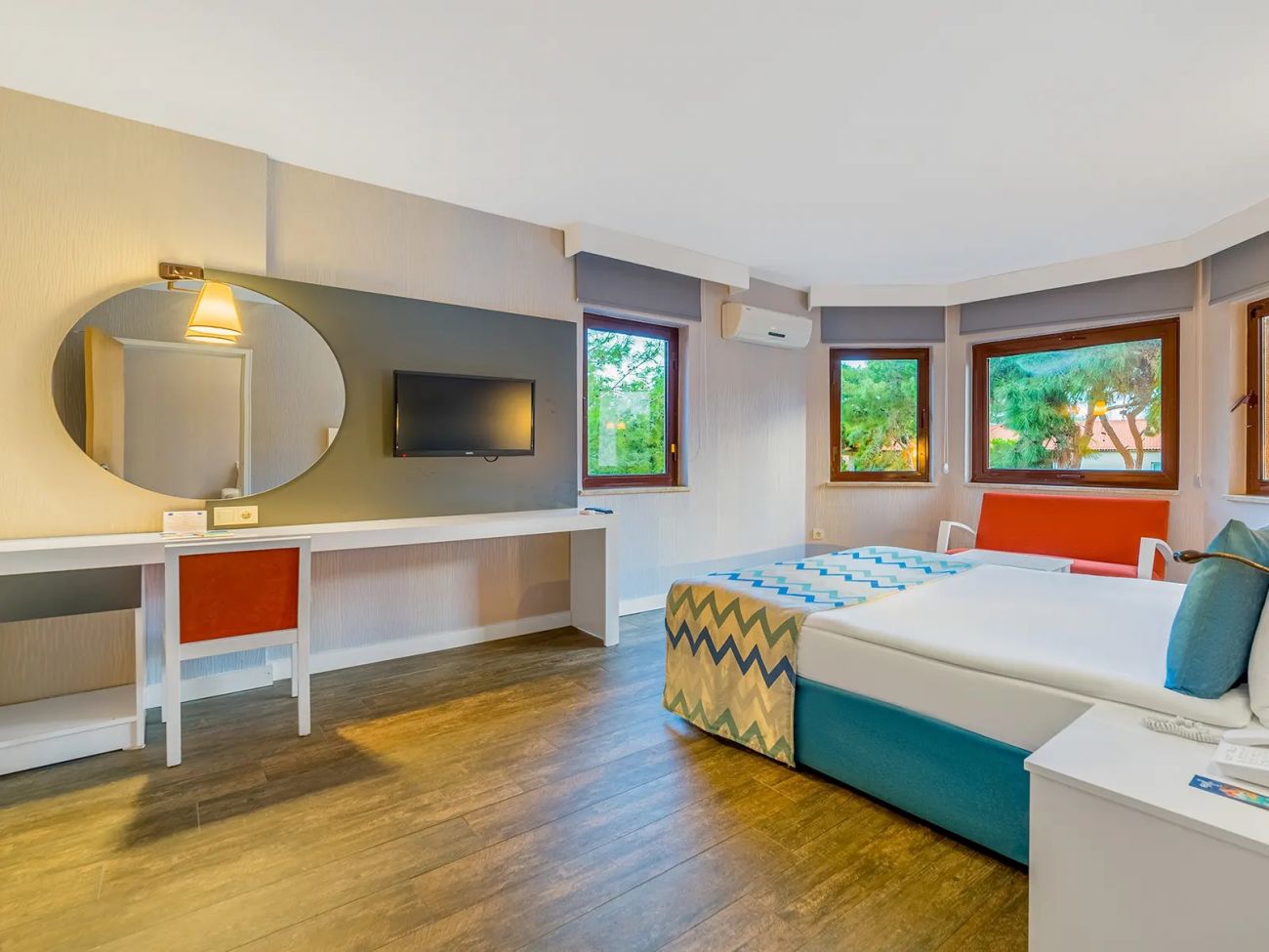 Всички стаи са оборудвани с климатик, телевизор, телефон, баня с душ, сешоар, сет за чай/кафе, минибар (безплатен), сейф (платен), балкон или тераса.