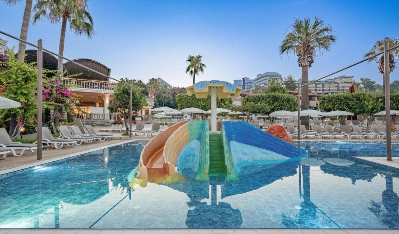 Основен ресторант, снек бар, гюзлеме, сладкарница, 4 бара, 2 открити басейна, 1 закрит басейн (отполяем през зимния сезон), водни пързалки (общ достъп с хотел Justiniano Club Alanya), СПА център, магазини, конферентна зала.