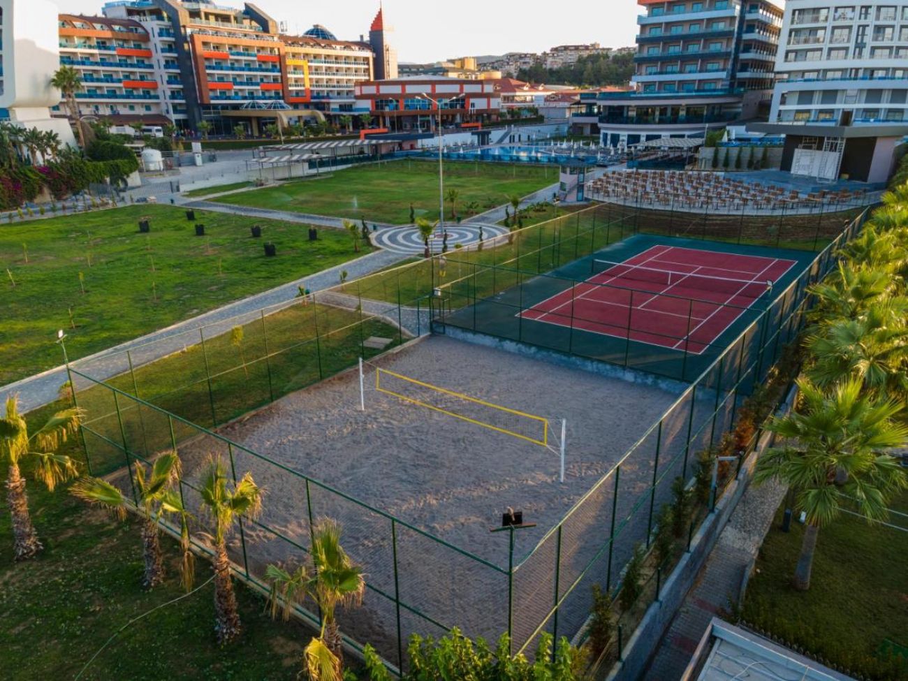 Безплатни услуги: Сауна, турска баня, парна баня, фитнес, водна гимнастика, водна топка, боча, дартс, баскетбол, тенис на маса, тенис корт (с твърдо покритие), плажен волейбол, софт анимация, паркинг, Wi-Fi (безплатно).