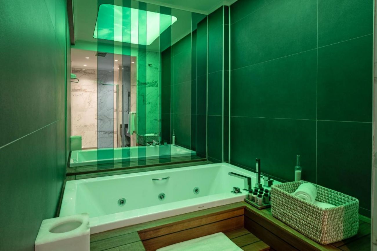 Стаи Main Block: 218 Standard room sea/pool side (изглед море/басейн -28 м2), 37 Jacuzzi Studios (1 спалня, 1 диван, 1 баня + джакузи - 35 м2).