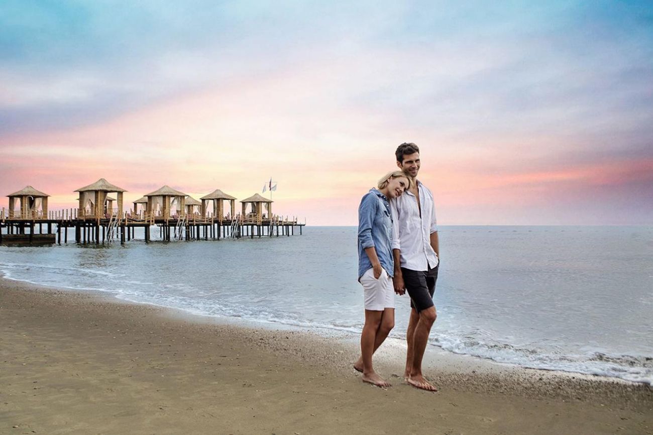Собствен, пясъчно-чакълест, 3 платформи, притежаващ сертификат "Син флаг". Чадъри, шезлонги и плажни кърпи на плажа и при басейна – безплатно.
