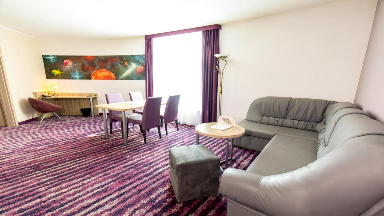 Хотел Galaxy предлага на своите гости висококачествено настаняване и изключително удобства. Стаите са модерно обзаведени, с комфортни легла и подово отопление, за да осигурят уютна обстановка по време на престоя. Всяка стая разполага с минибар, телевизор с плосък екран и безплатен достъп до Wi-Fi. Гостите също така могат да се насладят на частни балкони с прекрасна гледка към града. Всички стаи разполагат с достъп до хидромасажна вана, сауни, басейн и фитнес център. СПА центърът предлага широка гама от процедури за красота и релаксация. Стаите разполагат с LCD телевизор със сателитни канали.