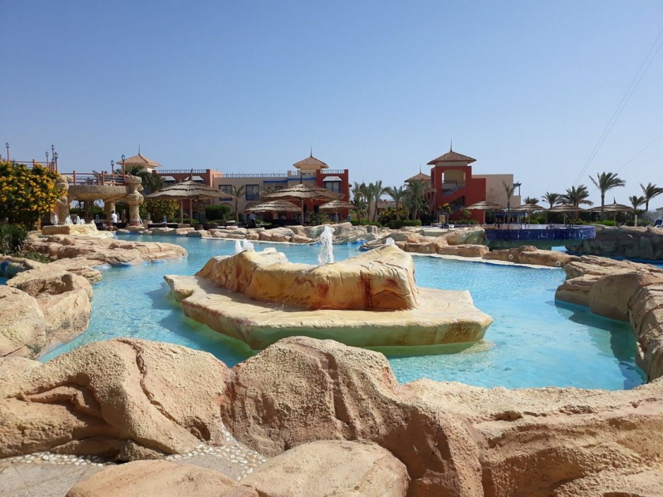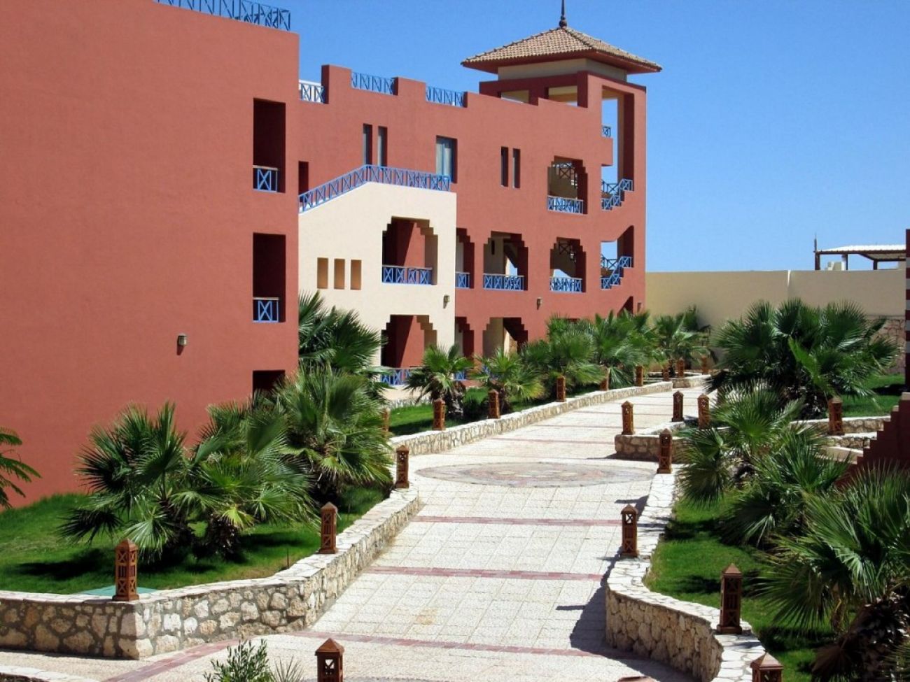 На територията: Разполага с основен ресторант, бар, снек бар, 2 открити басейна, частен плаж, тенис кортове, билярд и спа център с масажни процедури.