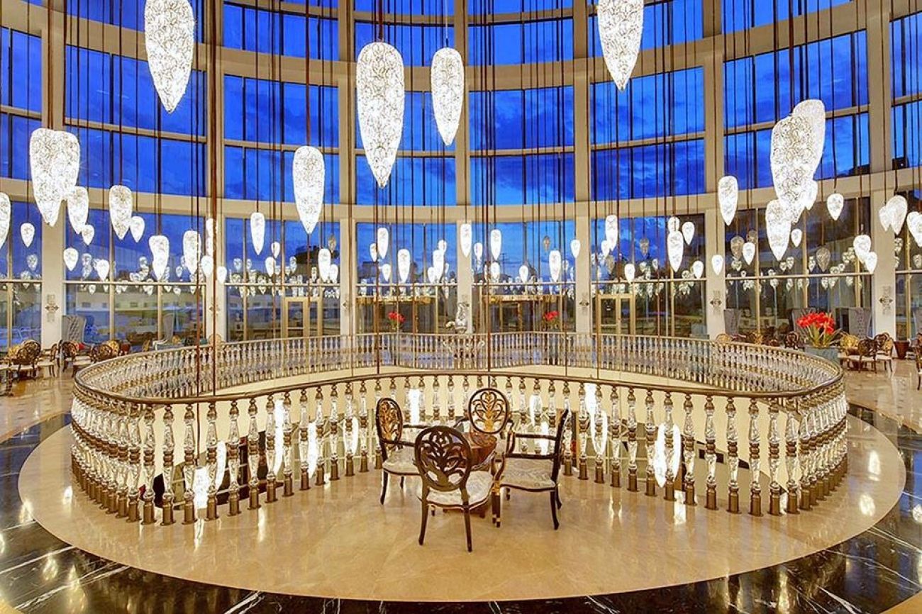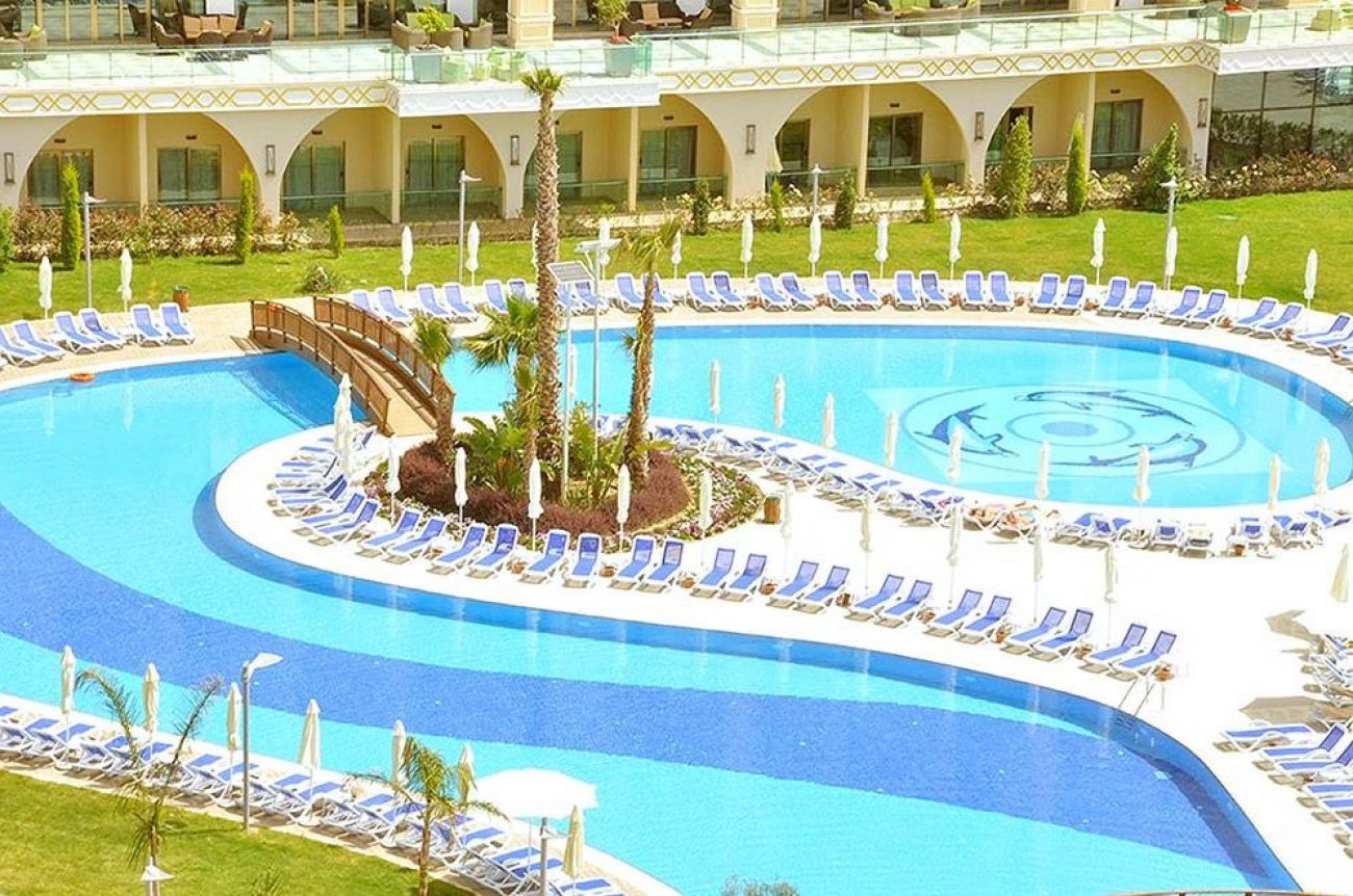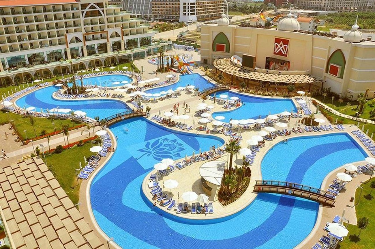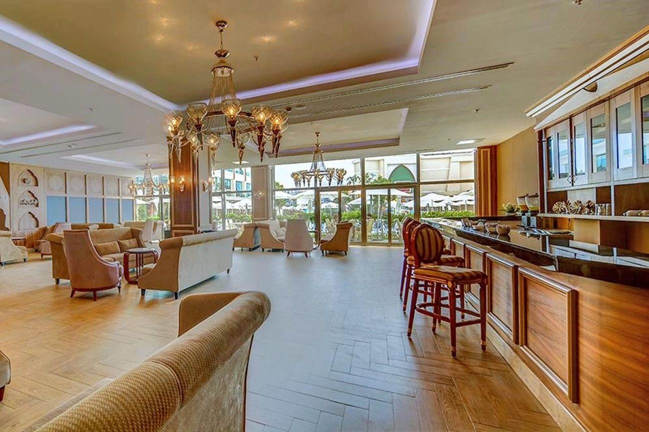 На територията: основен ресторант, 3 ресторанта a-la-carte (италиански, турски, далекоизточен, с предварителна резервация, за едноседмичен престой посещение на един от ресторантите - безплатно), 5 бара, 2 открити басейна, закрит басейн, водни пързалки, лекарски кабинет, SPA-център, фризьорски салон, търговска част, пералня и химическо чистене, конферентна зала (за 1200 чов.), безжичен интернет (на цялата територия на хотела, безплатно).