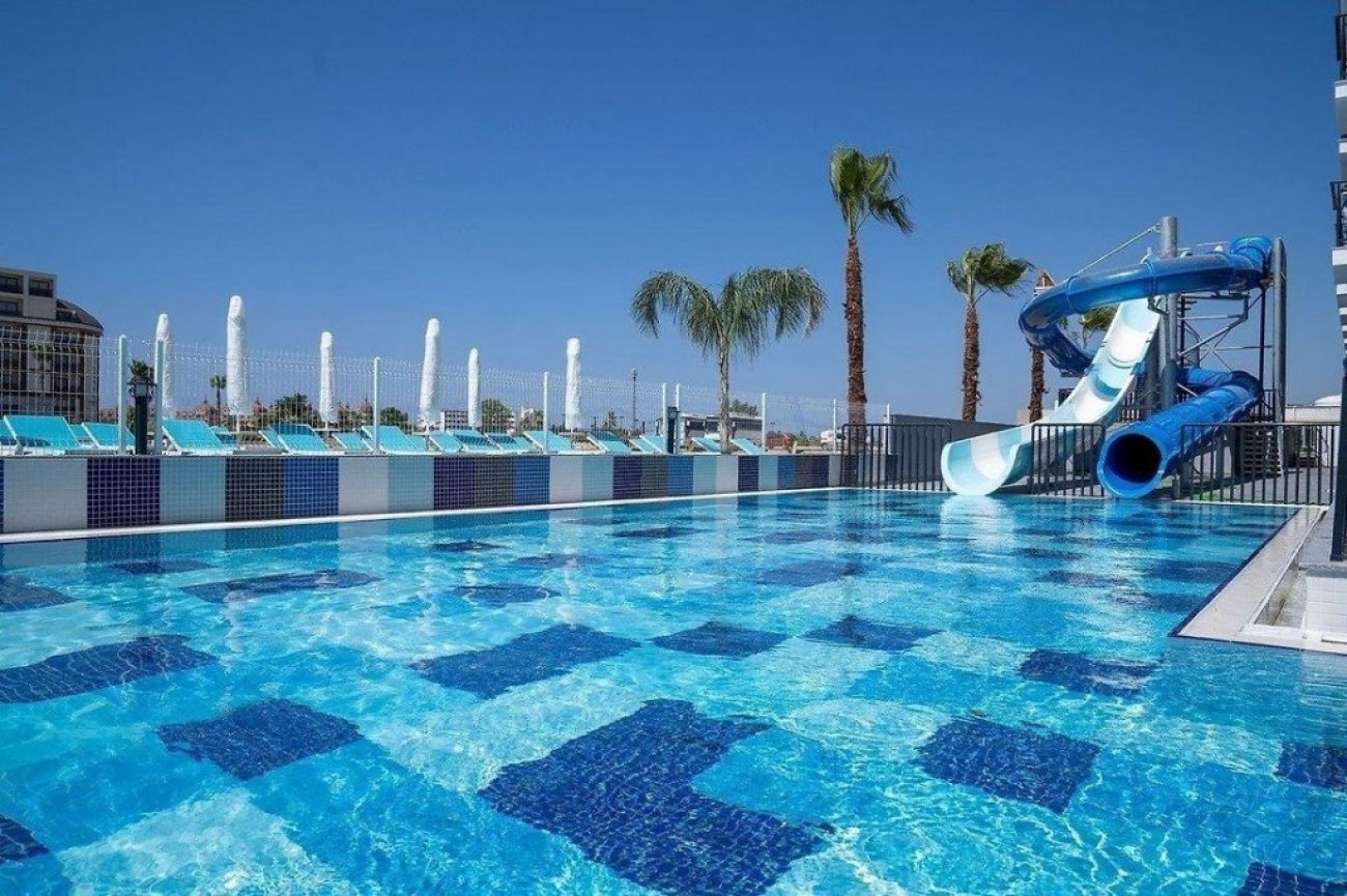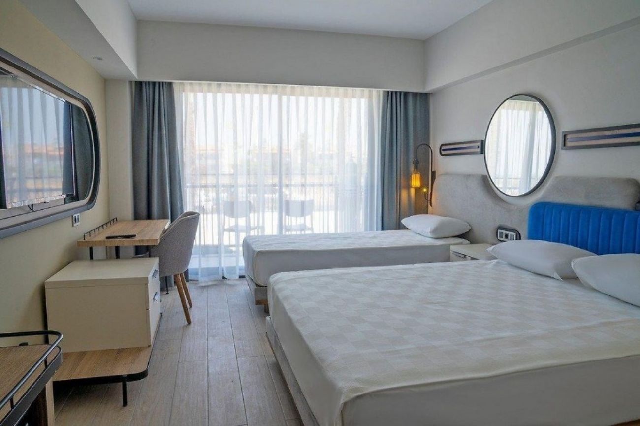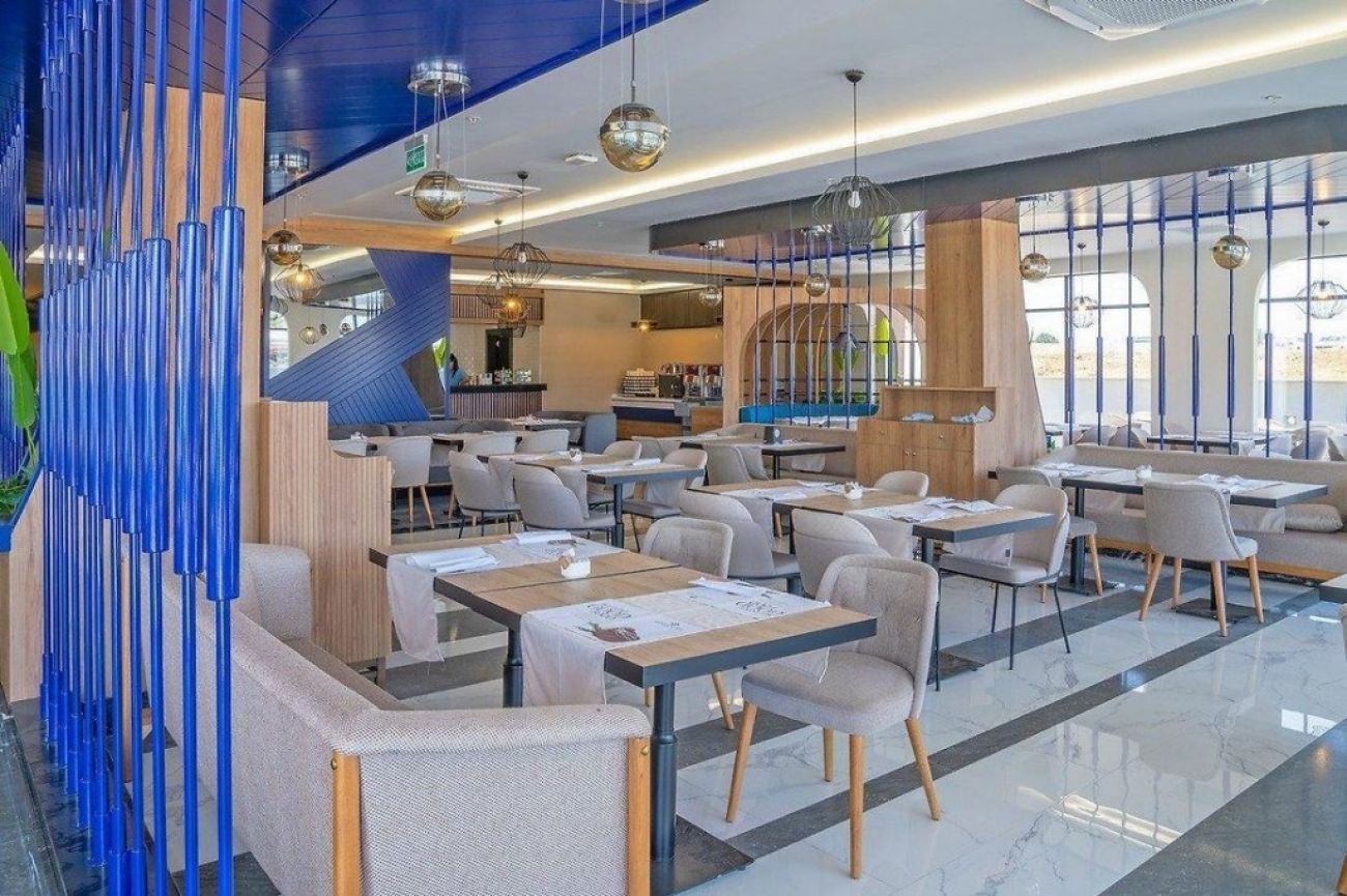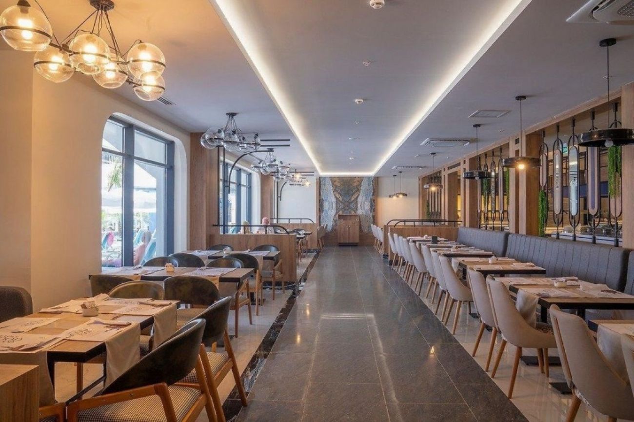 На територията на хотела: Хотелът разполага с външен басейн, аквапарк с площ 400 кв.м., закрит басейн с площ 45 кв.м., основен ресторант, а-ла-карт ресторант, снек-ресторант (средиземноморски), ресторант на плажа, кът за бързо хранене, пет бара (витамин бар срещу заплащане) и сладкарница.