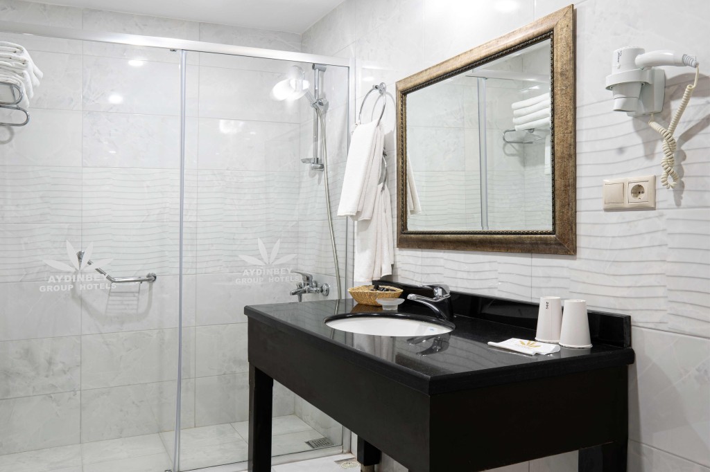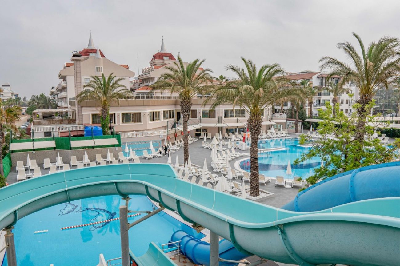 На територията на хотела: Хотелът предлага разнообразни съоръжения, включително 345 кв.м открит плувен басейн, 150 кв.м басейн с три пързалки, 120 кв.м вътрешен басейн с отопление през зимата, основен ресторант за 800 души, четири A’la Carte ресторанта (рибен, османски, италиански и закуска), шест бара (лоби бар, кафене, бар на плажа, бар на басейна и снек бар), амфитеатър, ТВ салон, магазини, безплатен Wi-Fi в цялата сграда, пералня, медицински услуги, коли под наем и две конферентни зали за 120 и 132 души.