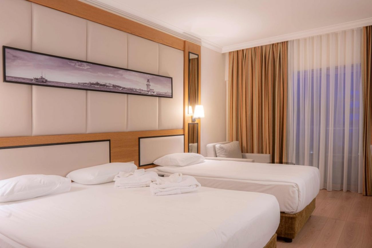 В стаите: Стаята разполага с индивидуален климатик, сателитна телевизия, минибар с ежедневно водоснабдяване, телефон с директно избиране, душ, тоалетни принадлежности, удобства за приготвяне на чай и кафе, сешоар, сейф (безплатно), Wi-Fi (безплатно), ежедневно почистване на стаята, смяна на спалното бельо 3 пъти седмично и ежедневна смяна на хавлиите.