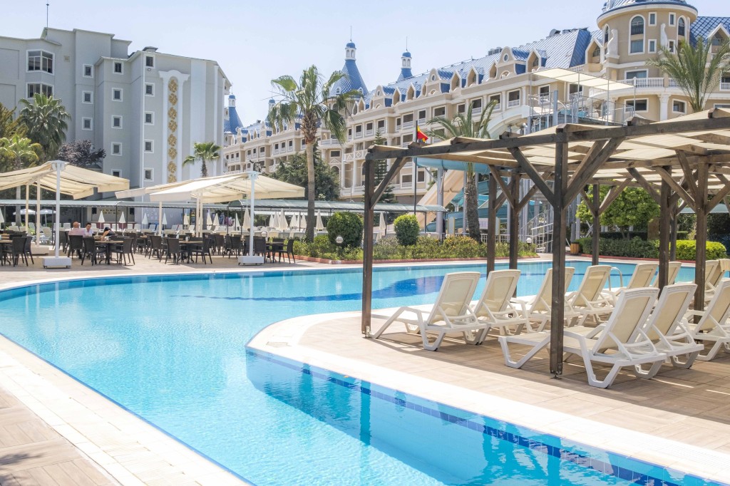 На територията на хотела: Основен ресторант, 2 а-ла-карт ресторанта (турски и рибен - с предварителна резервация, при настаняване за една седмица едно посещение на един ресторант е безплатна, 01.09-15.09 ), 4 бара, дискотека, 2 открити басейна, закрит басейн, 4 водни пързалки, SPA център, 2 конферентни зали, Интернет-кафе, фризьорски салон, лекар на повикване, магазини, библиотека, пране.