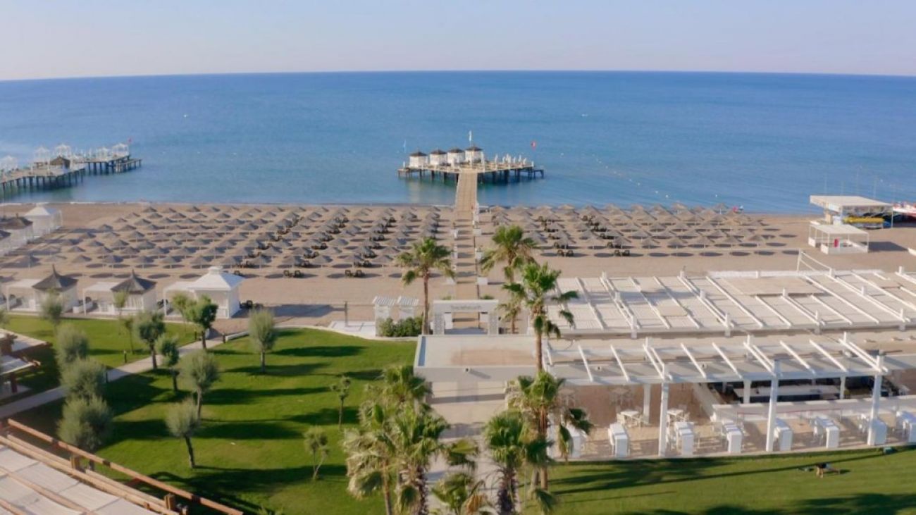 Частен пясъчен плаж на първа брегова линия. Чадъри, шезлонги, матраци и кърпи се предоставят безплатно. Плажните павилиони се предлагат срещу допълнително заплащане. Входът към морето е пясъчен, има кей. Плажът е дълъг 160 метра.