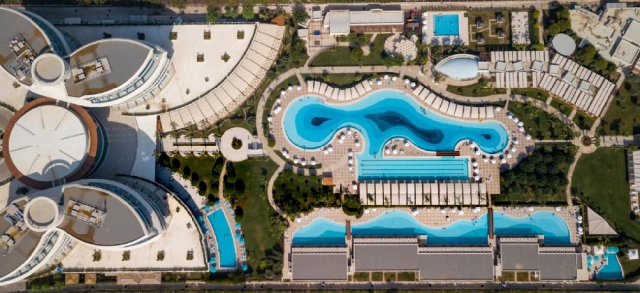 Комплексът предлага разнообразие от водни и развлекателни възможности: основен открит басейн (1700 кв. м), олимпийски басейн (550 кв. м), къщи на езерото (1100 кв. м), отопляем басейн за възрастни (1100 кв. м), аквакула с шест пързалки (650 кв. м) и нов басейн с джакузи (180 кв. м). Закритият отопляем басейн е отворен в зависимост от времето (150 кв. м). Гостите имат достъп до разнообразни ресторанти и барове: основен ресторант за 1100 души, два ресторанта а ла карт (стекхаус и средиземноморска кухня), снек-ресторант, лоби бар, диско бар, снек-бар на плажа и бар край басейна. Има и сладкарница. За забавление има кино (временно затворено поради пандемията), телевизионен салон, безплатен Wi-Fi, лекар на повикване, паркинг и пералня. Три конферентни зали с площ от 88, 92 и 600 кв. м. м са подходящи за събития.