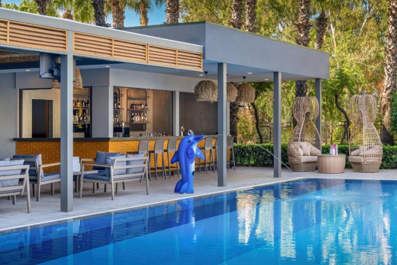 На територията на хотела: Хотелът предлага безплатен Wi-Fi във фоайето. Предлагат се и конферентни зали и амфитеатър под наем. Гостите могат да се възползват от медицинските услуги на хотела, обмяна на валута, паркинг, коли под наем, салон за красота, магазини и пералня. Освен това има открити и закрити басейни с различни размери, включително басейн с пързалки. Основният ресторант "Делфин" е отворен от 7:00 до 21:00 часа. Ресторантите а ла карт предлагат разнообразие от кухни, включително турска, италианска, японска, китайска, мексиканска, гръцка и рибна кухня. Те са отворени от 19:00 до 21:30 часа. Хотелът разполага още с кафене Avanti, лоби бар, бар Joia, бар край басейна и снек бар Palm. Диско барът е отворен от 23:00 до 02:00 часа.