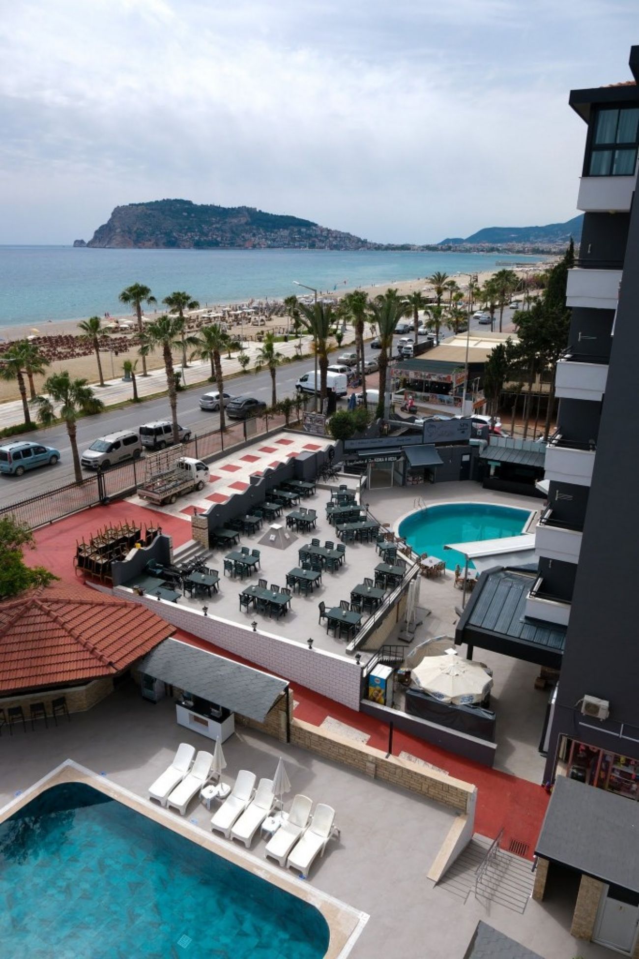 Разположение: Намира се на 135 км. от летище Анталия, на 140 км. от центъра на Анталия, на 3 км. от центъра на Алания, на 250 м. от брега на морето. Построен е през 1999 г., с обща площ от 5.800 м2, реновиран през 2005 г.