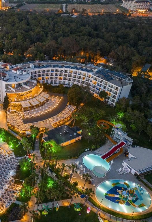 Основен ресторант (има диетична и вегетарианска храна), 3 ресторанта a la carte (италиански, турски, барбекю - с предварително записване, за седмичен престой 1 посещение на един от ресторантите по избор - безплатно), 4 бара, дискотека, 2 открити басейна, 1 закрит басейн (с подгряване през зимния период), 2 водни пързалки, Спа център, фризьорски салон, магазини, пералня и химическо чистене.