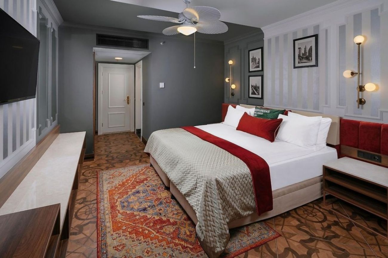 Разположение: Хотелът се намира на 6 км от Лара, на 2 км от Кунду и на 20 км от летището в Анталия, на брега на морето. Построен през 2003 г. и е реновиран през 2023 г. Архитектурата на хотела е вдъхновена от руския Кремъл и Червения площад съчетавайки източни и европейски елементи. Разположен на територия с площ от 100 000 м2.