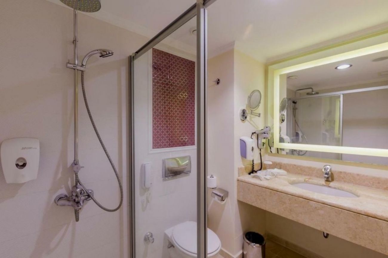 В стаите: Състои се от основната пететажна сграда и три блока на 4-6 етажа за удобство на гостите, оборудвани с асансьори. Хотелът предлага на своите гости 875 стаи. Всички стаи са оборудвани с централен климатик, баня с душ и вана, сешоар, сателитна телевизия, телефон, чехли, сет за кафе и чай, мини бар, сейф (безплатно), балкон, WI-FI (безплатно), под - мокет и теракота. Почистване на стаите - ежедневно, смяна на спално бельо и кърпи - 3 пъти седмично.