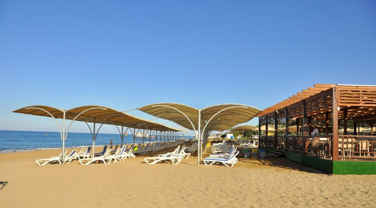 Плаж: Собствен пясъчно-чакълест плаж на 1300 м от хотела с осигурен шатъл. Чадъри, шезлонги, матраци и плажни кърпи се предоставят безплатно, на разположение на гостите има и бар на плажа.