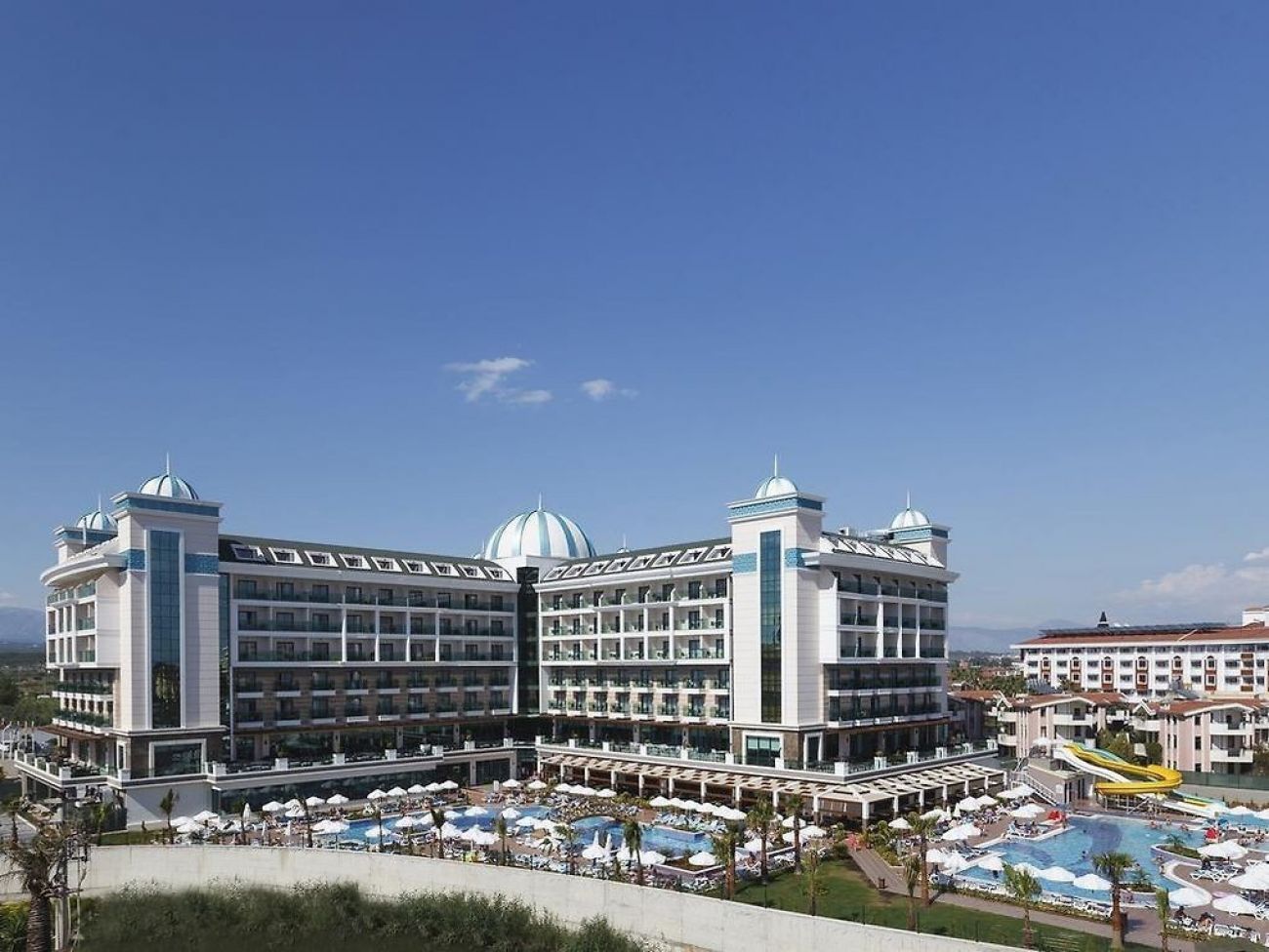 Luna Blanca Resort & SPA в курортния град Сиде предлага 4 открити и 2 закрити басейна, собствена зона на плажа, турска баня, сауна, спа и уелнес център и 3 водни пързалки за забавления. Предоставен е безплатен WiFi. Веднъж седмично за гостите се организират традиционни турски вечерни развлечения край басейна.
