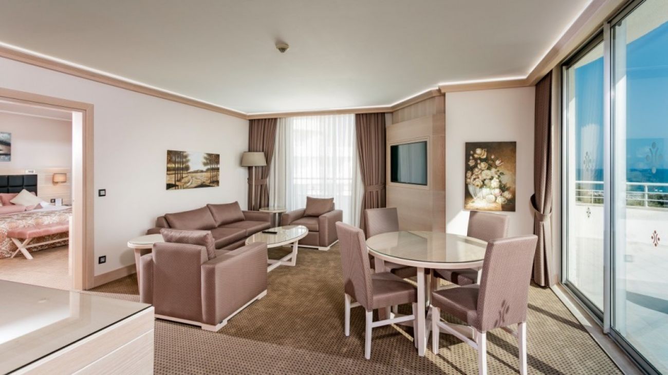 В стаите: Хотелът разполага с общо 696 стаи, от които 425 стандартни стаи и 122 семейни стаи. Всички стаи са оборудвани с климатик, сателитна телевизия, телефон, баня с вана, сешоар, минибар (вода и безалкохолни напитки), електронен сейф (безплатно), балкон, WI-FI(безплатно). Почистване на стаите и смяна на кърпите – всеки ден, смяна на бельото – веднъж на 2 дни.