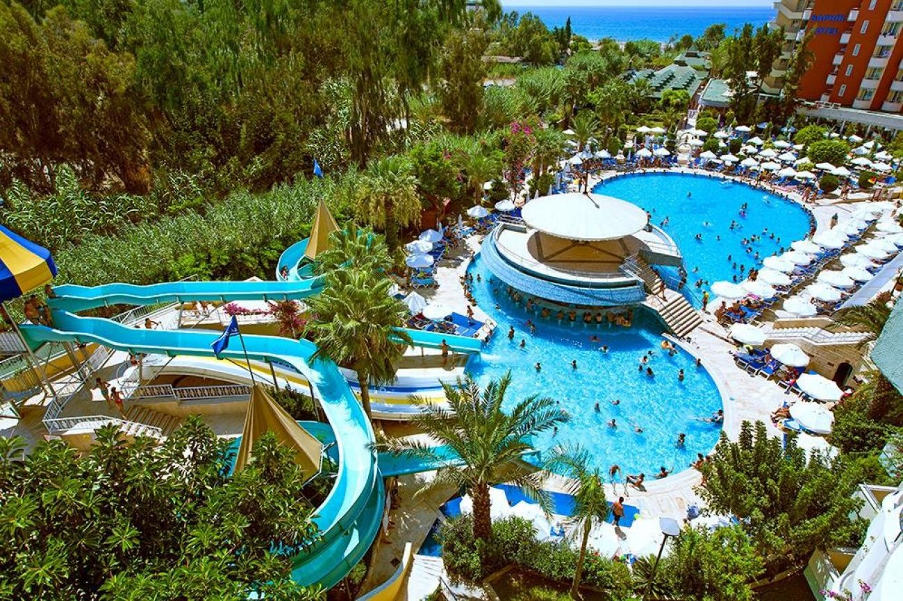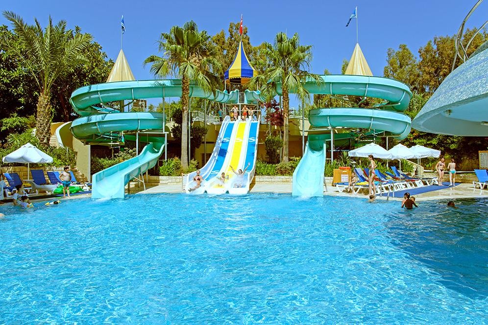 Основен ресторант, 2 а - ла - карт ресторанта(с предварителна резервация), 6 бара, 4 басейна, 5 водни пързалки, анимация, амфитеатър, интернет кафе (срещу заплащане), дискотека (безплатно), обмен на валута, магазини, 2 конферентни зали (500 места), паркинг. За децата: детски басейн, водни пързалки, детегледачка(заплаща се допълнително) Безплатни услуги: турска баня, сауна, фитнес център, дартс, волейбол, баскетбол, тенис на маса, Wi-fi Интернет Платени услуги: масаж, фризьор, Интернет кафе, център за красота, СПА - център, билярд Плаж: Пясъчно - чакълест. Плажни чадъри, матраци и шезлонги – безплатно.