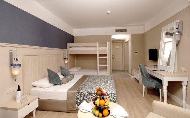 Основен ресторант, 4 а - ла - карт ресторанта (рибен, турски, италиански и китайски, с предварителна резервация, за едноседмичен престой - едно безплатно посещение на един ресторант), сладкарница, 6 бара, 2 открити и 1 закрит басейн, водни пързалки, амфитеатър, дискотека, мини маркет, 4 конферентни зали. За децата: 2 детски басейна – открит и закрит, мини клуб (4-12 г.), тийни клуб (11-15г.) – 6 дни в седмицата, детска анимация, лунапарк. Безплатни услуги: Сауна, турска баня, аеробика, дартс, тенис на маса, степ, боча, плажен волейбол, анимация, Wi-Fi (в лоби). Платени услуги: Масаж, Спа център, лекар, фризьор, рент-а-кар, химическо чистене, боулинг, билярд, интернет, електронни игри, водни спортове, фрешове на плажа. Плаж: Собствен - пясъчен, удостоен със сертификат „Син флаг”. Чадъри, шезлмонги, матраци и плажни кърпи на плажа и при басейните - безплатно.